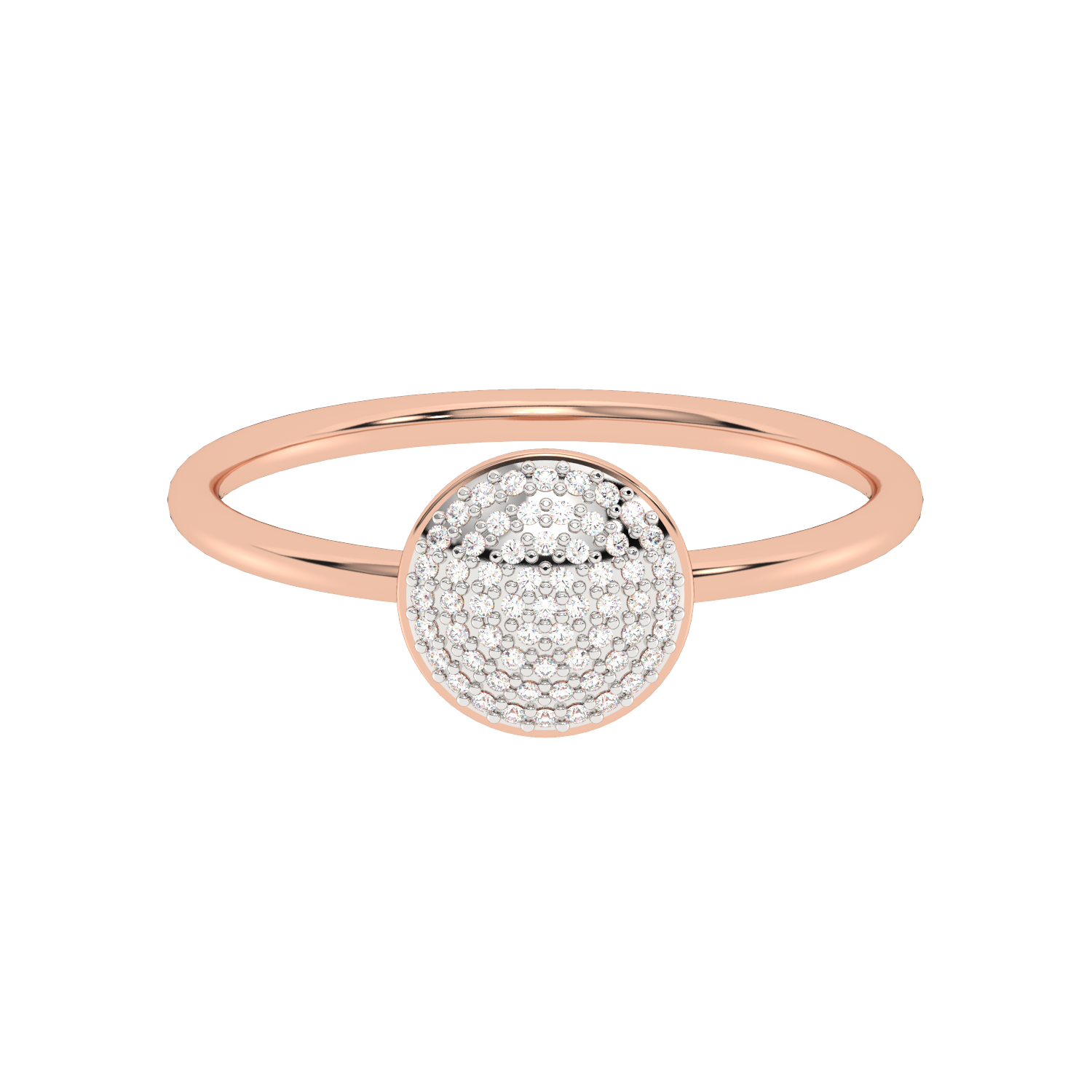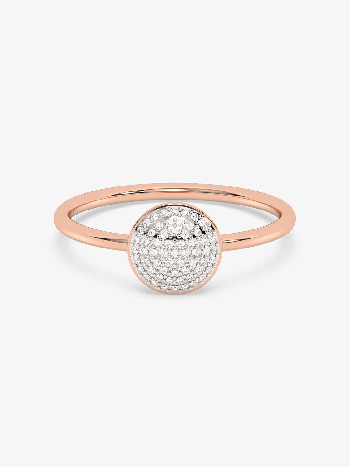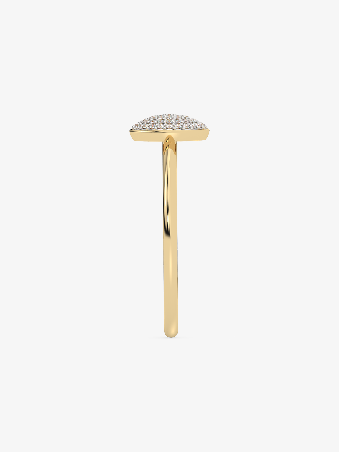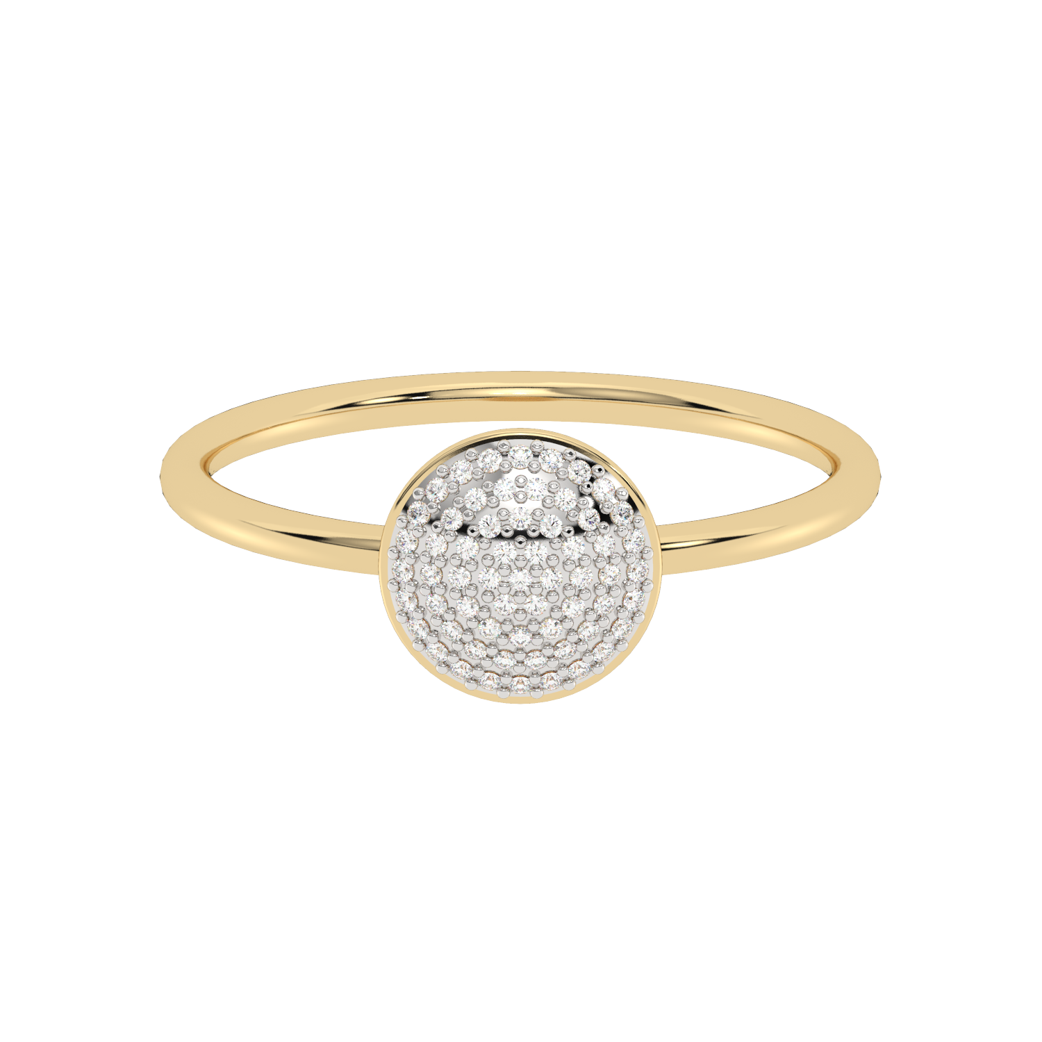 A classic gold ring with a round eye filled entirely with sparkling diamonds.