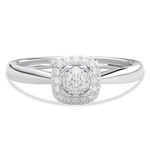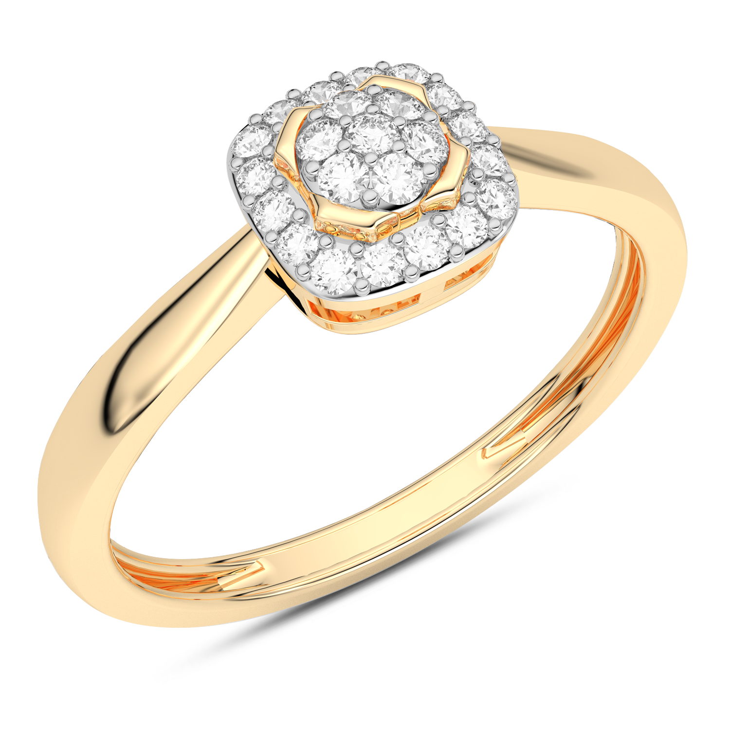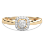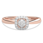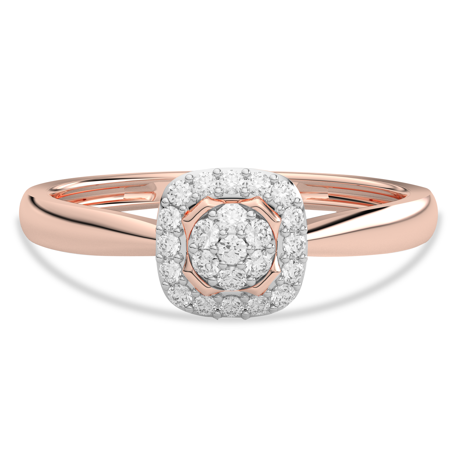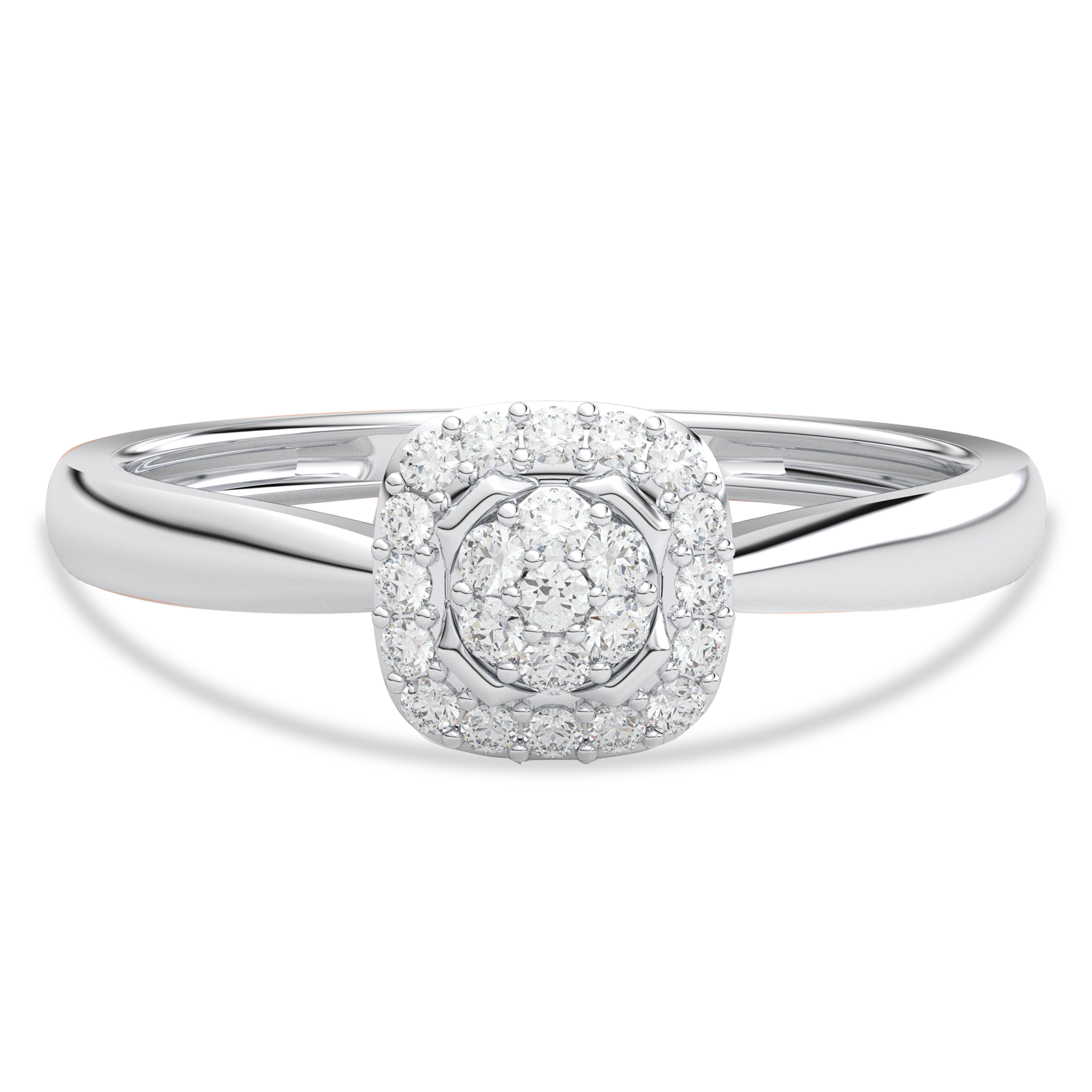 An elegant square-shaped ring with a round diamond in the center, surrounded by a square diamond band.