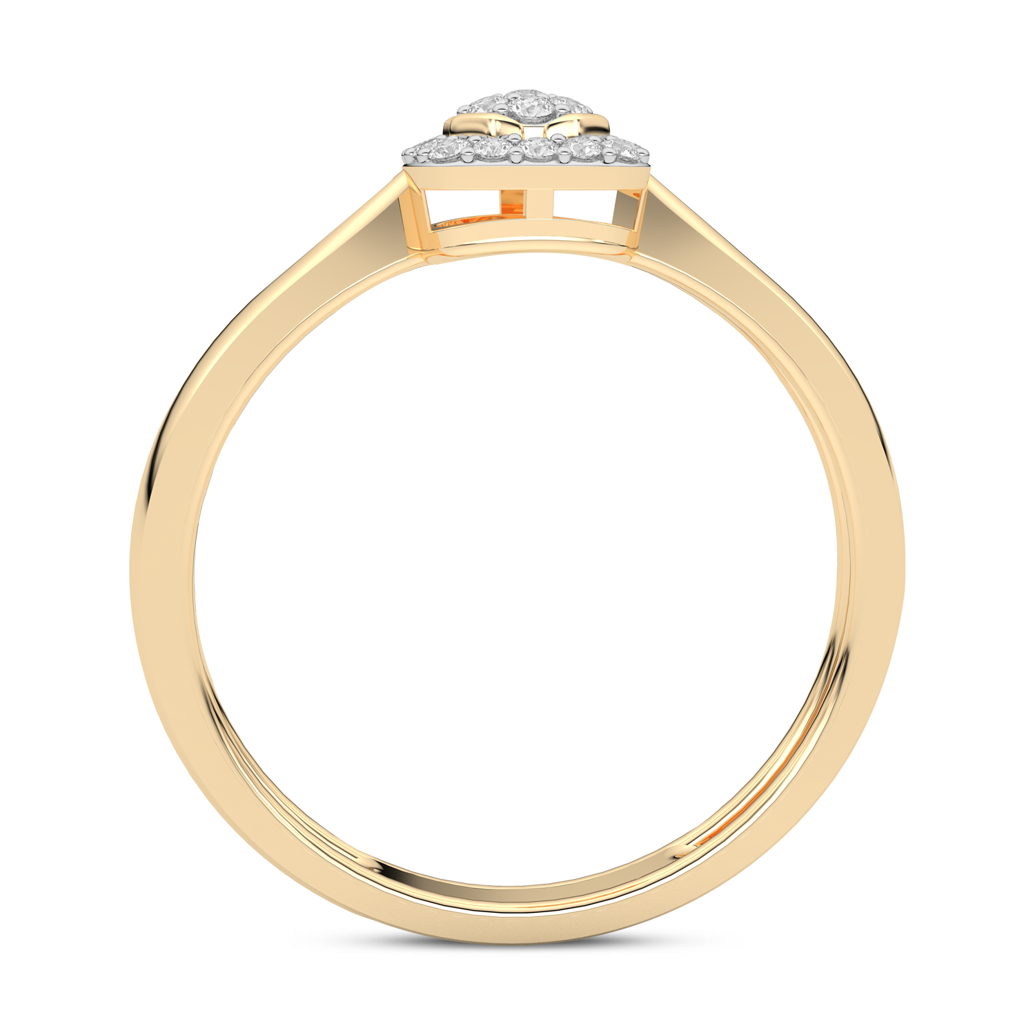 Złoty pierścionek z brylantami na palcu modelu, idealny na eleganckie okazje