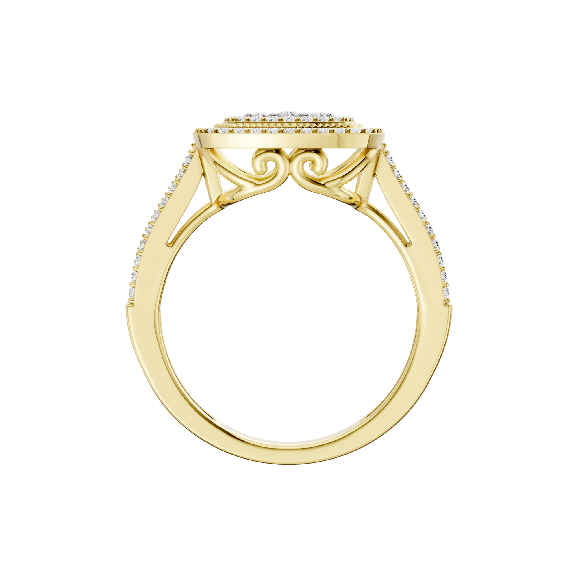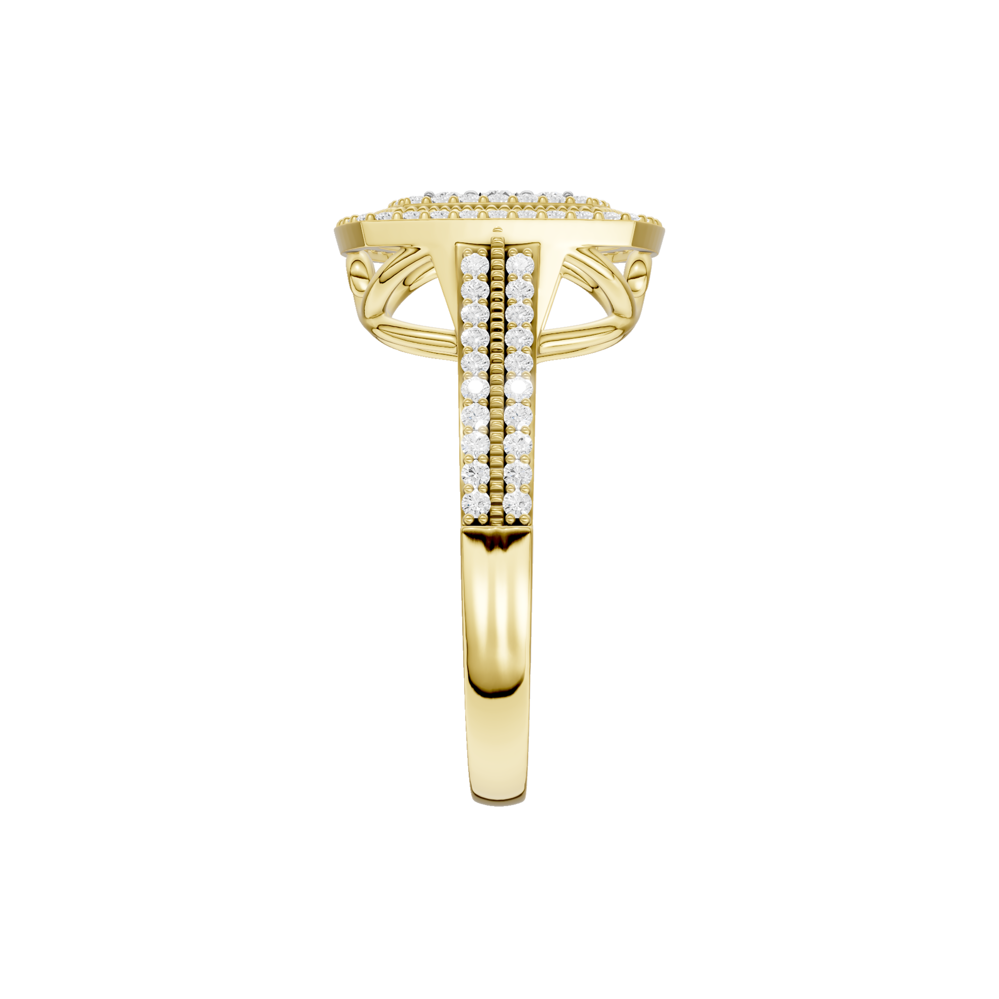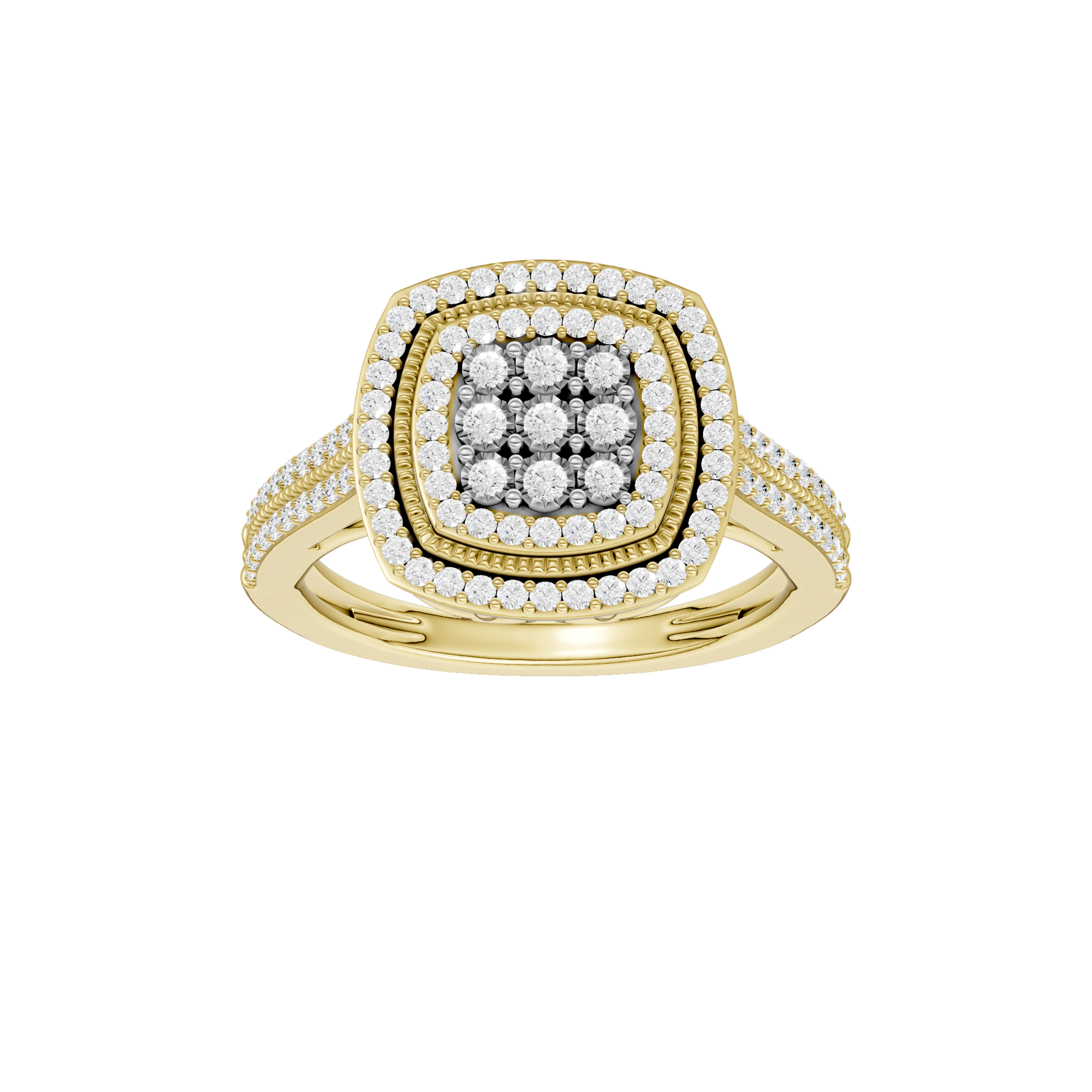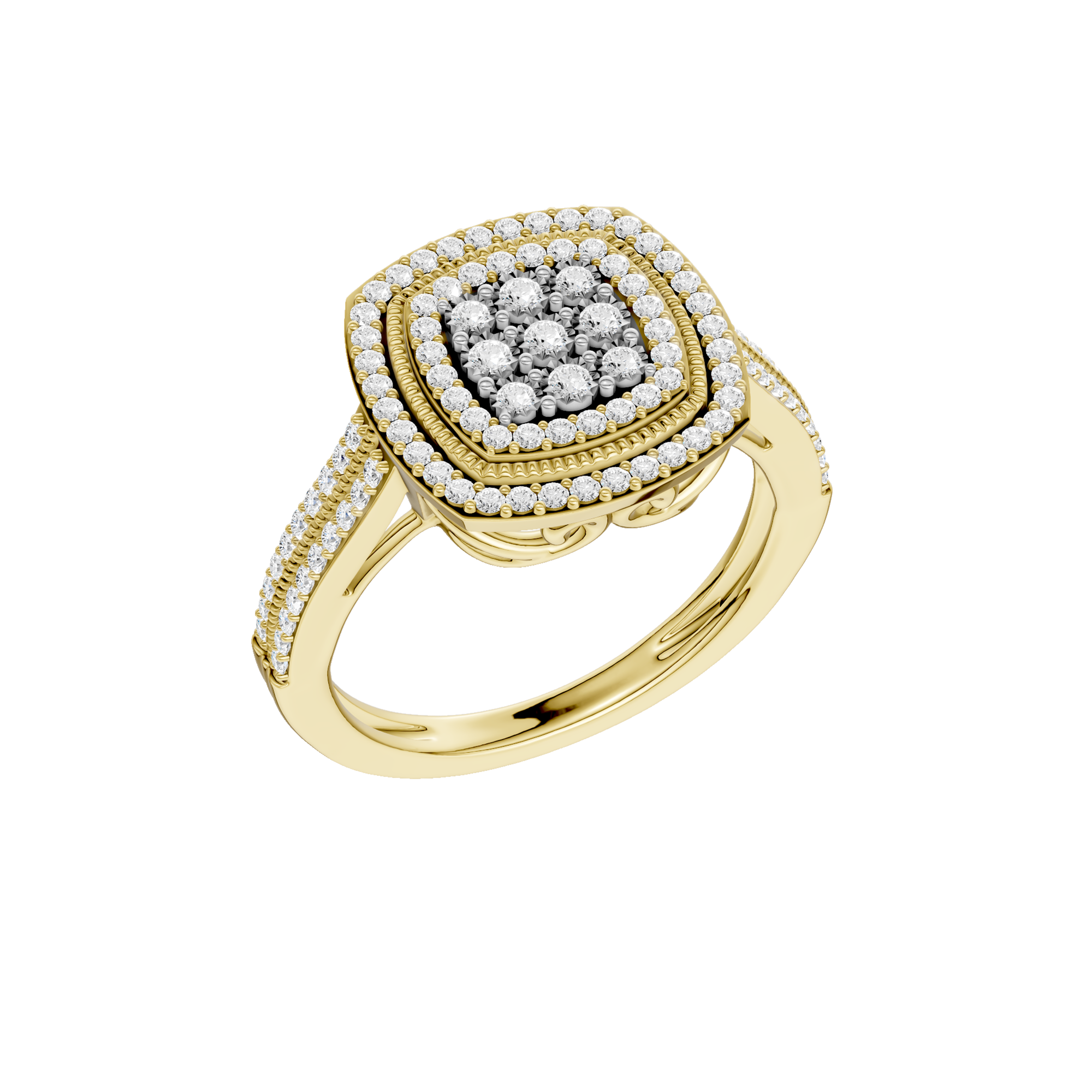 Złoty pierścionek z brylantami z błyszczącą poduszką i wysadzeniem diamentów