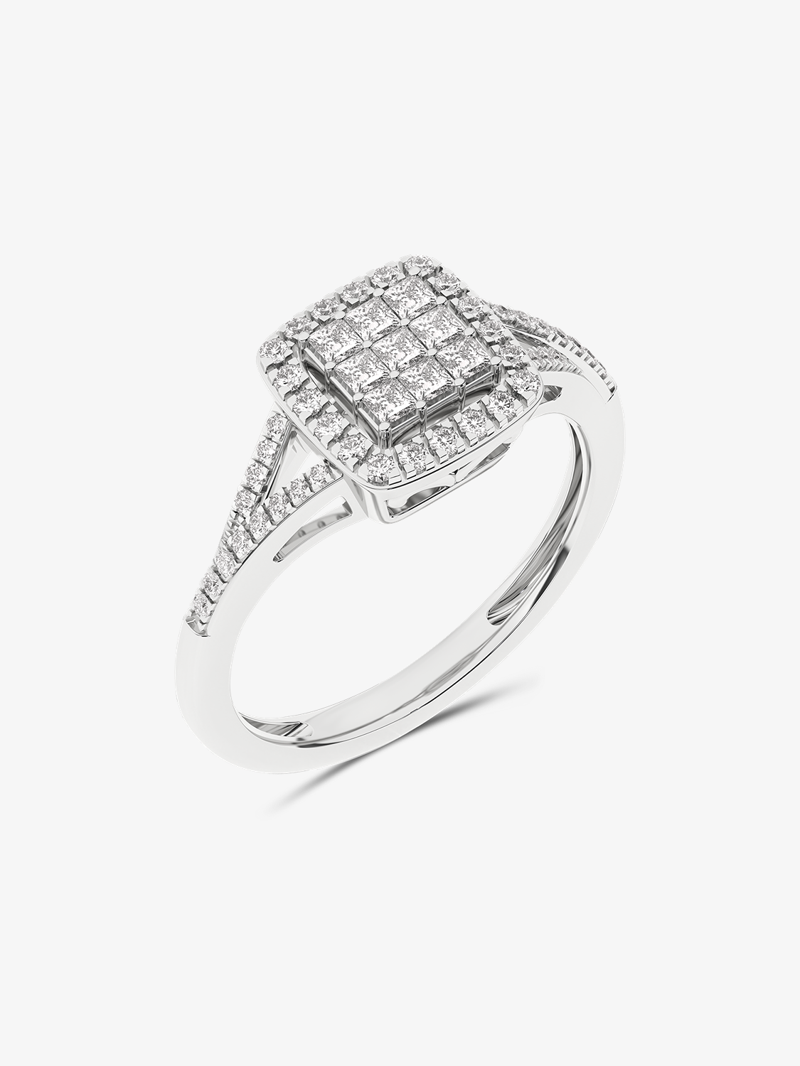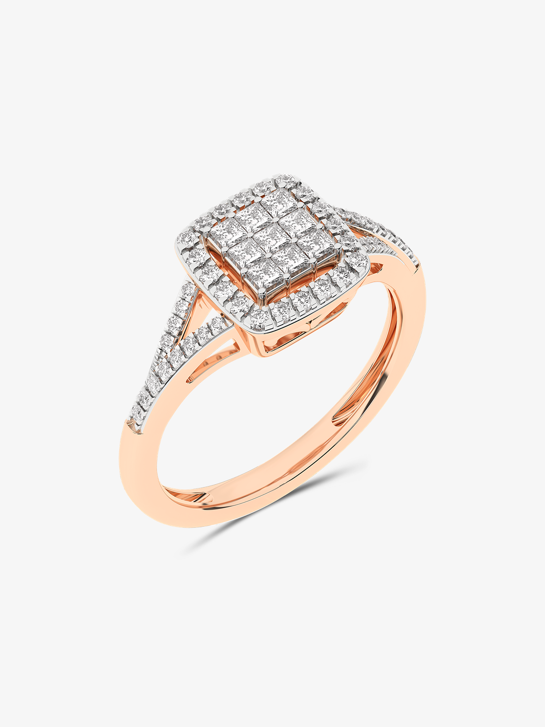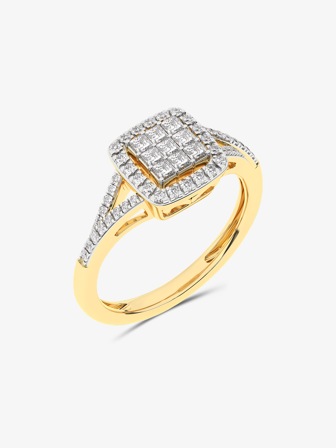 Złoty pierścionek z kwadratem brylantowym Pavé - Venetia Jewels - 14K złoto z brylantami