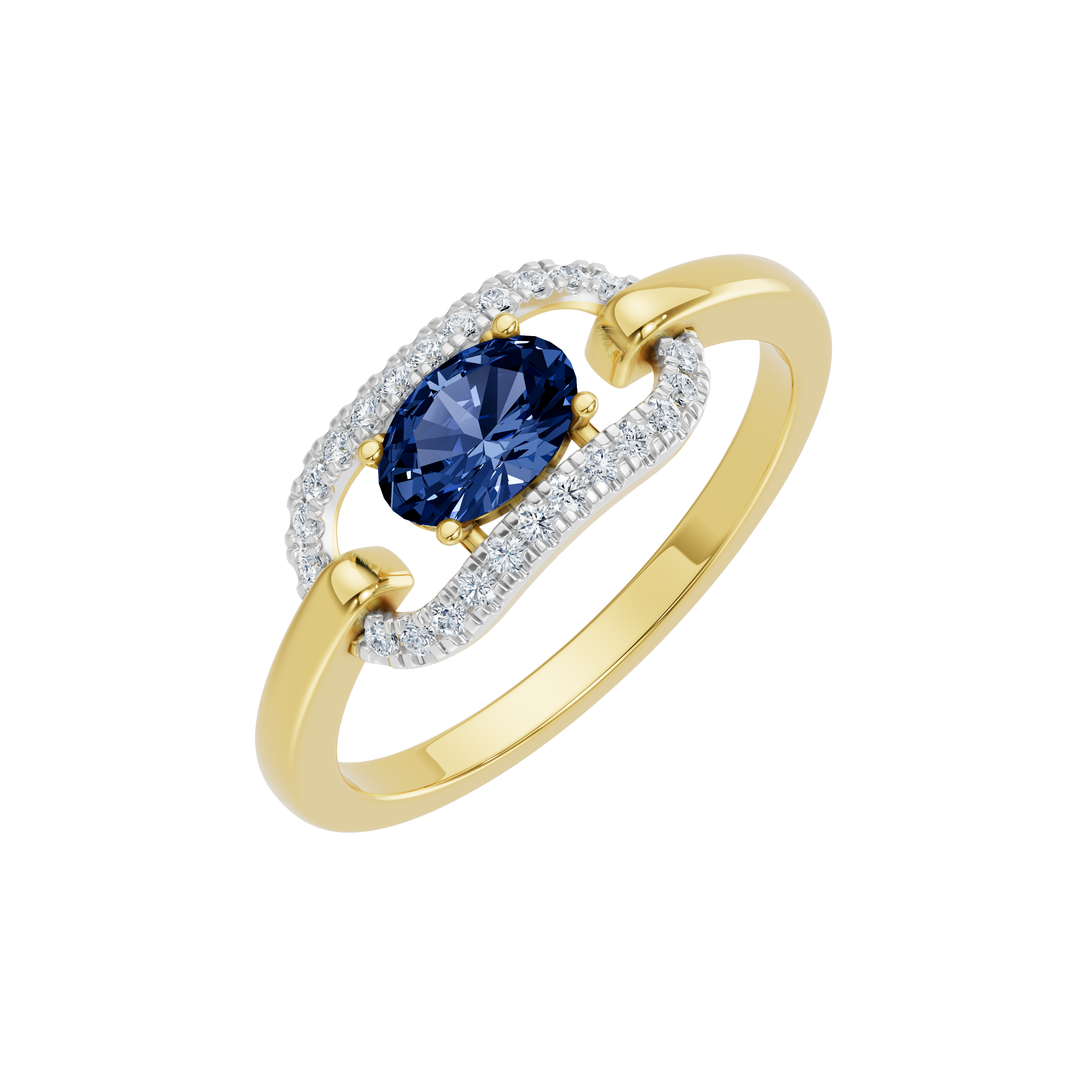 Złoty pierścionek z szafirem i brylantami od Venetia Jewels, elegancki design z owalnym szafirem