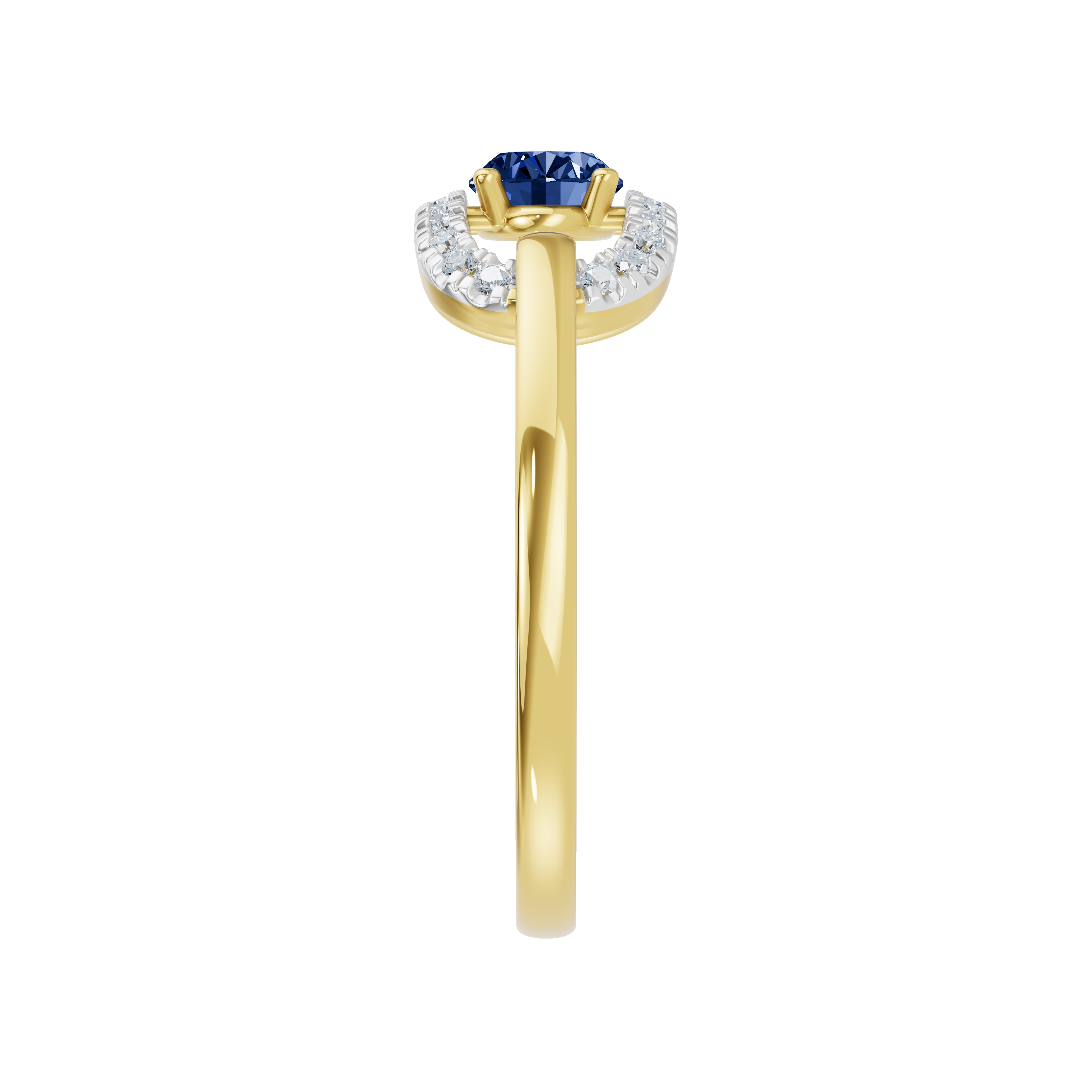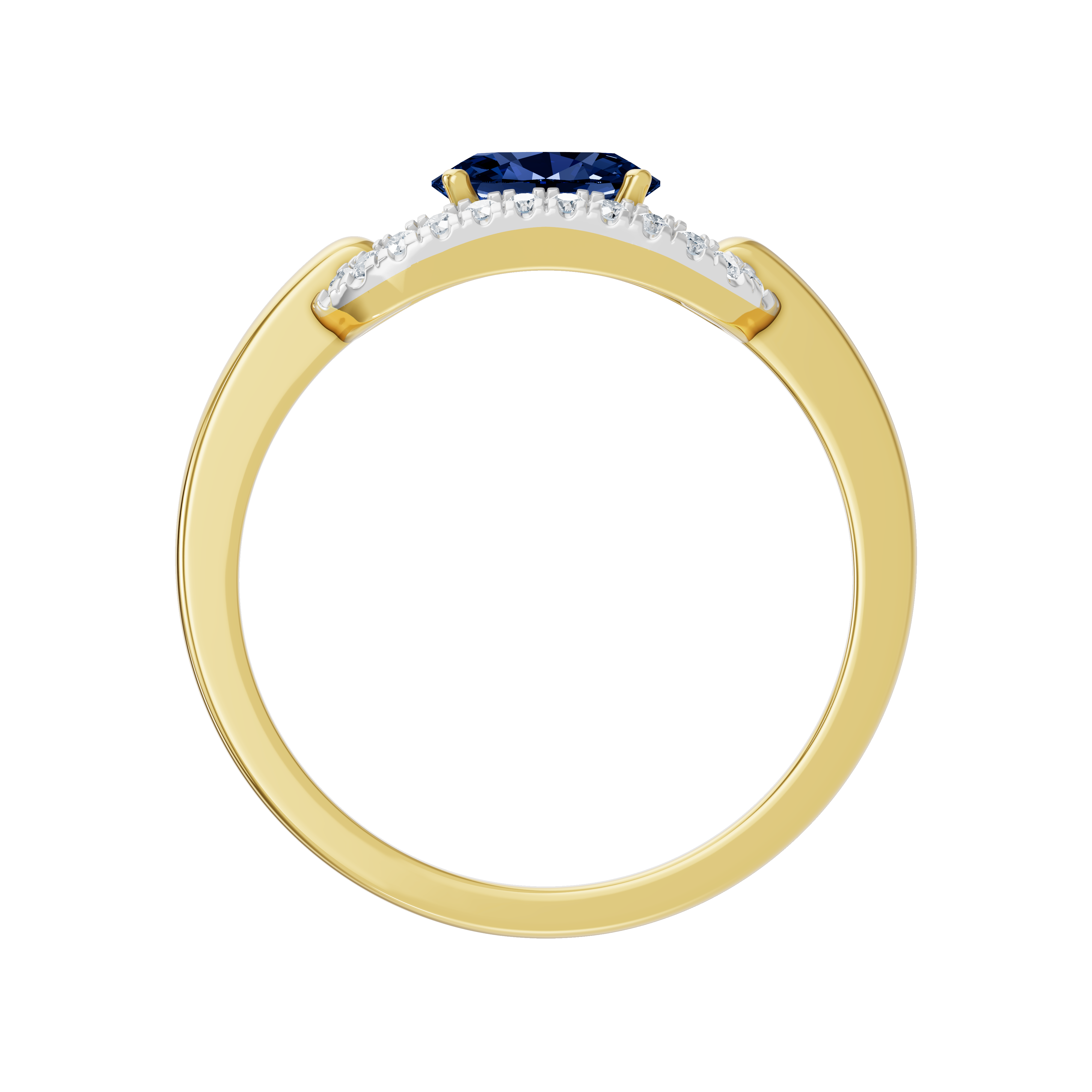 Złoty pierścionek z szafirem i brylantami z eleganckim wykończeniem w prostym stylu