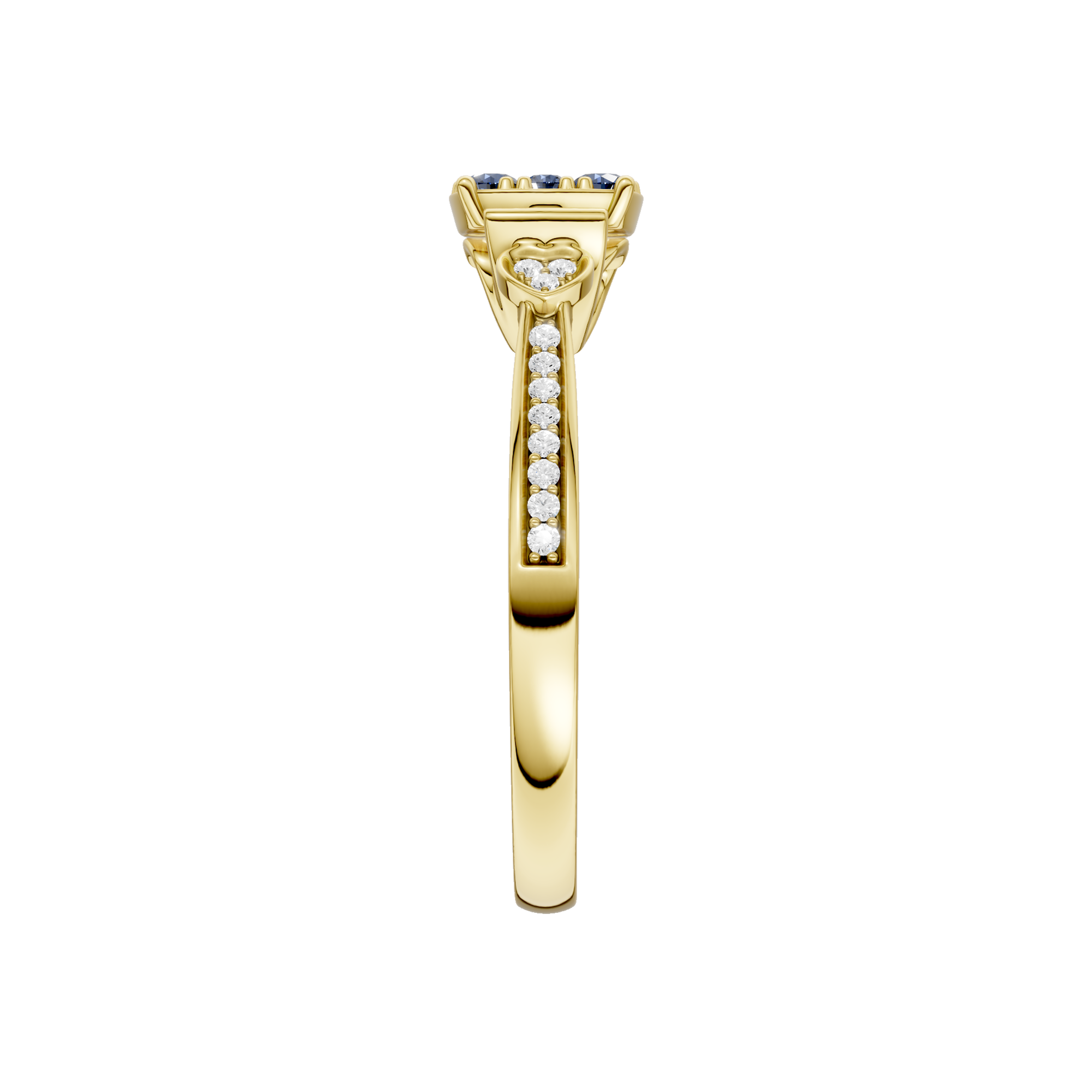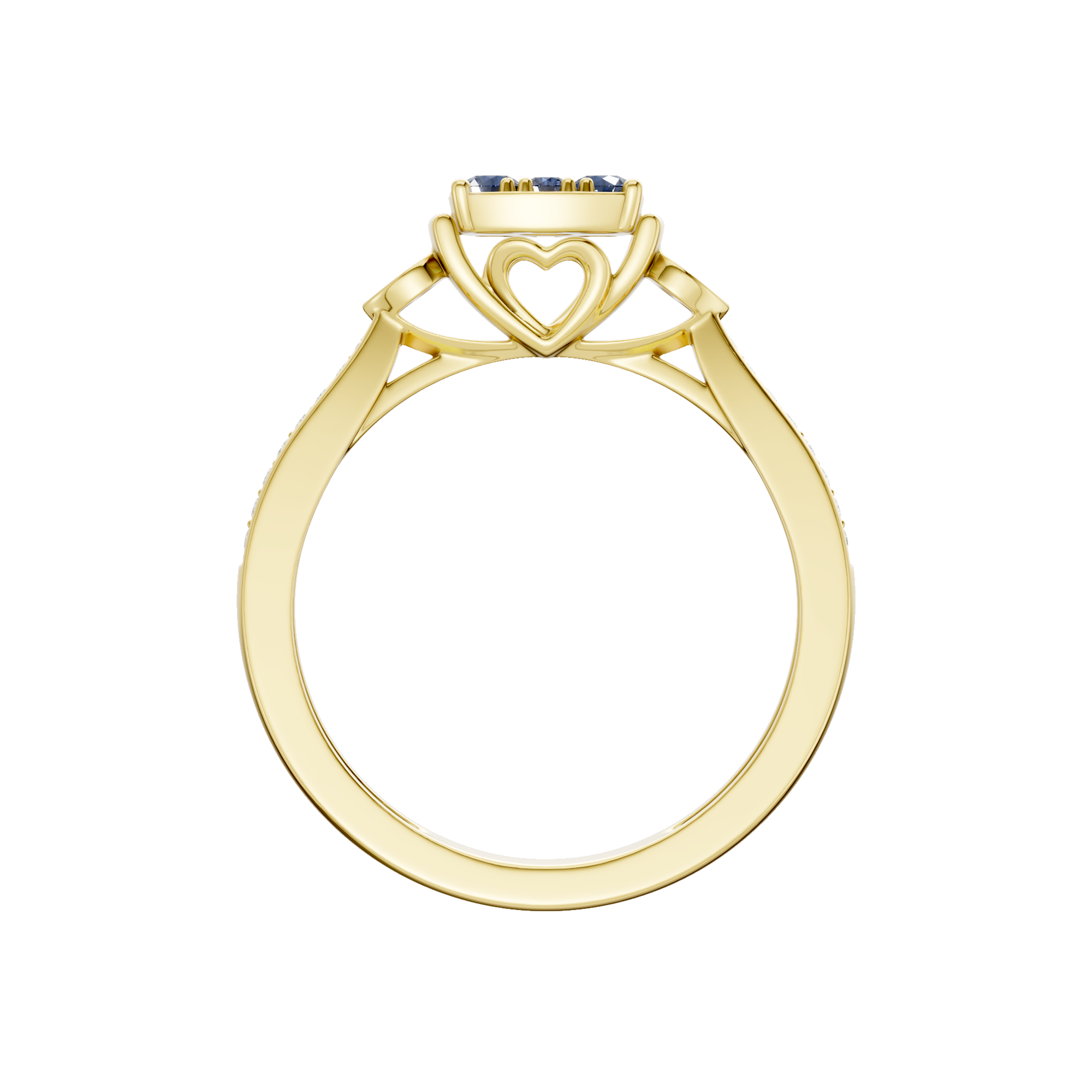 Złoty pierścionek z szafirami i brylantami z sercowym wycięciem na obrączce