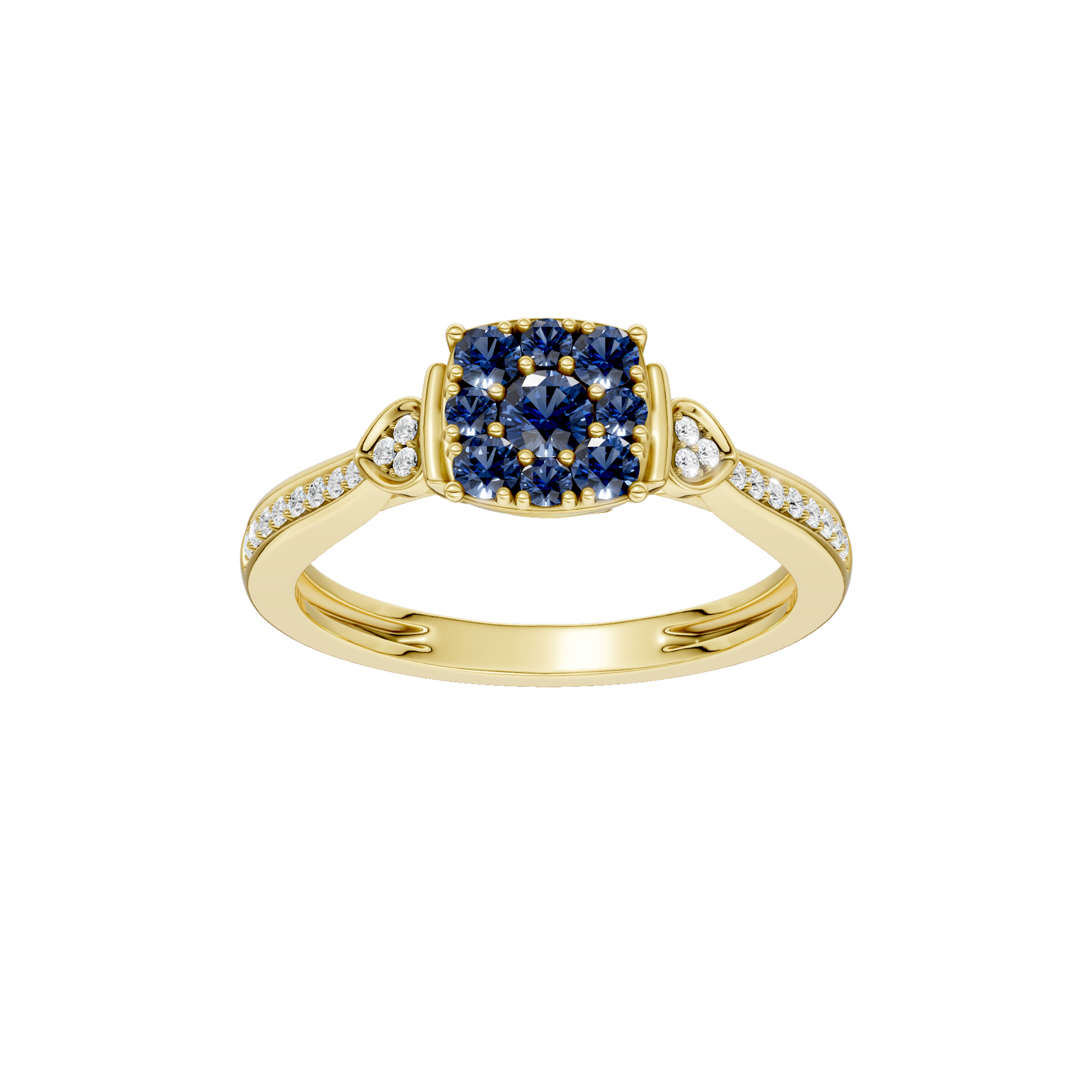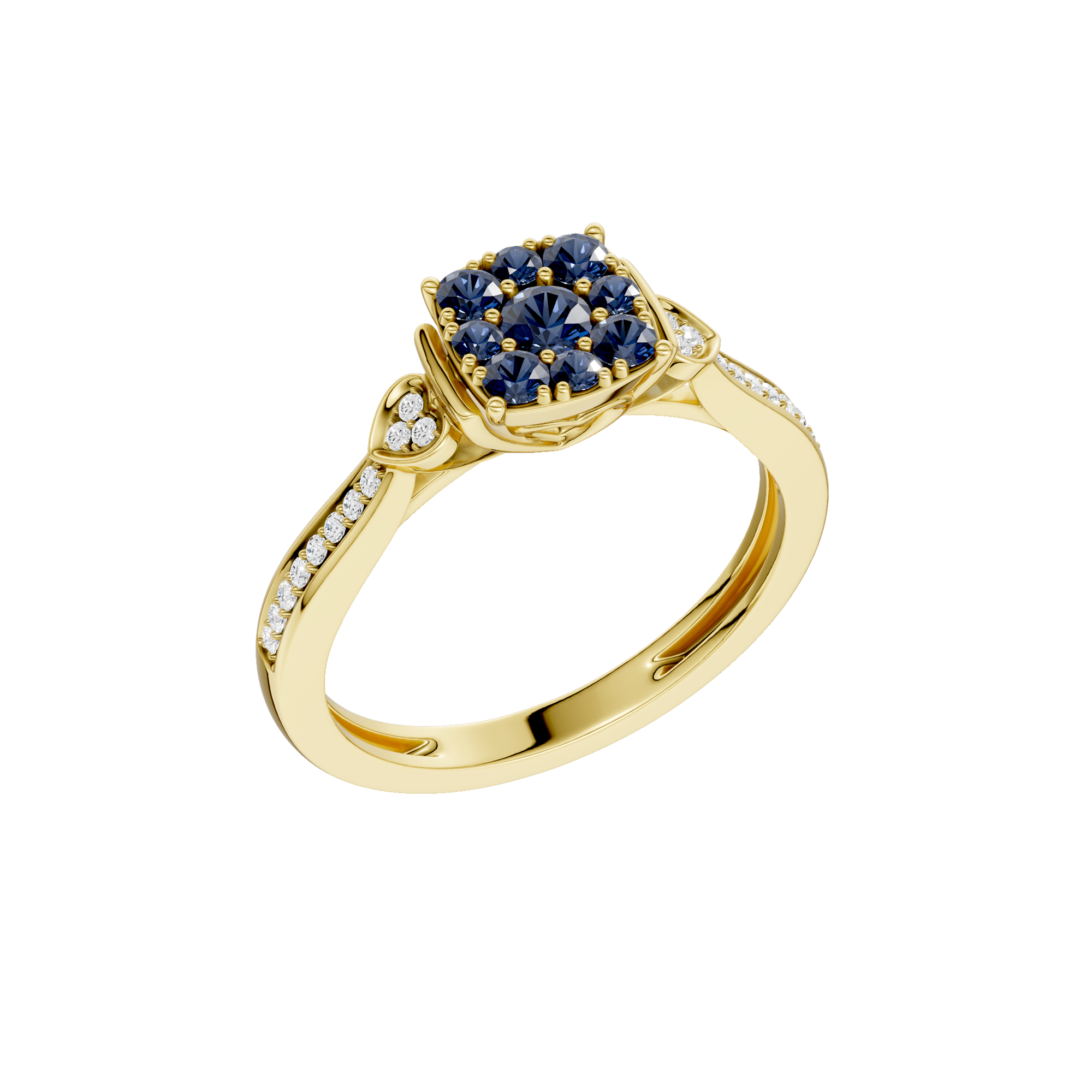 Złoty pierścionek z szafirami i brylantami w eleganckim designie, idealny na każdą okazję