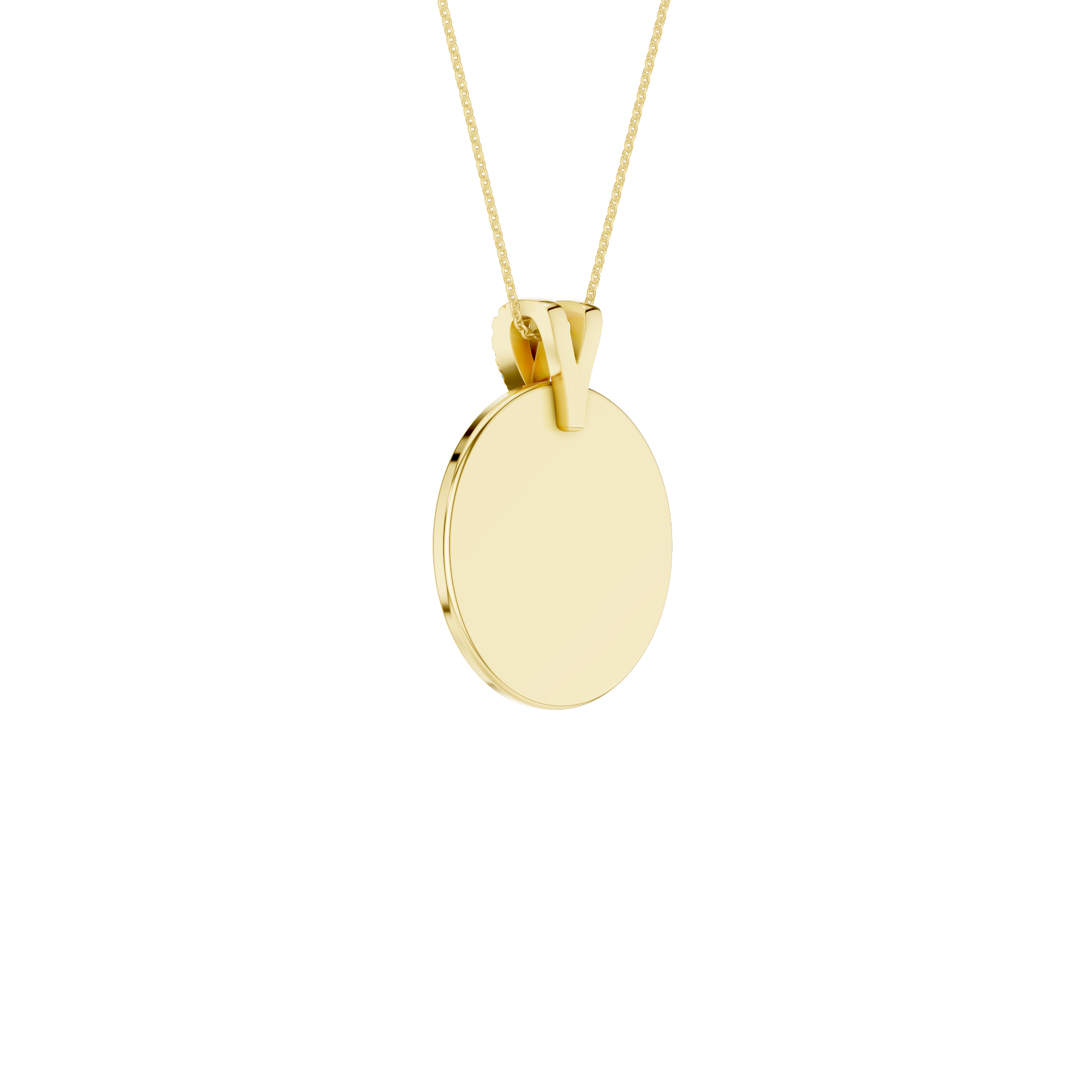 A subtle and elegant pendant in .585 yellow gold, this pendant captivates with its minimalist design and luxurious finish. The smooth, round medallion hangs from a diamond "X"-shaped pendant, adding unique character and sparkle. This timeless piece of jewelry pairs perfectly with any outfit, from everyday to evening wear. The pendant features the perfect surface for a personalized engraving, making it a unique and meaningful gift. Chains sold separately.