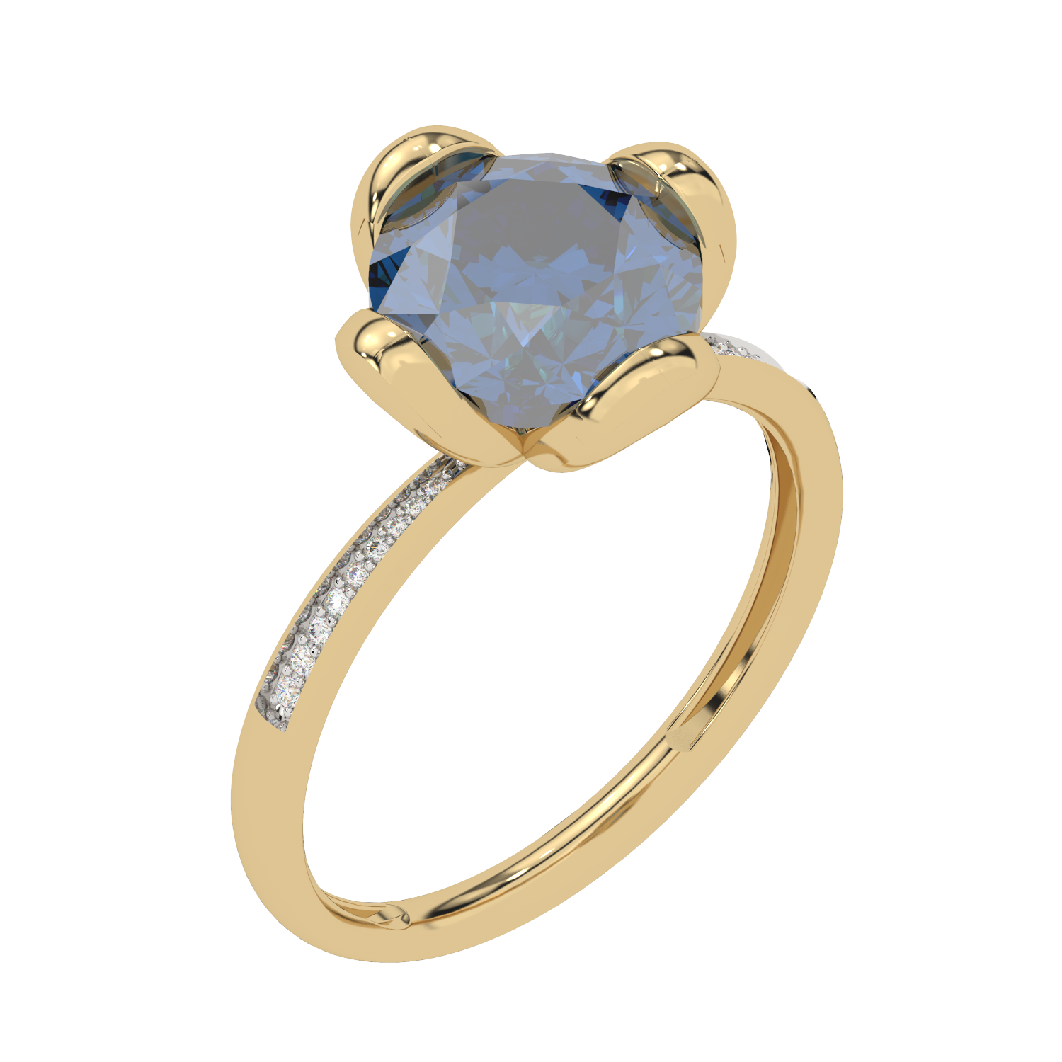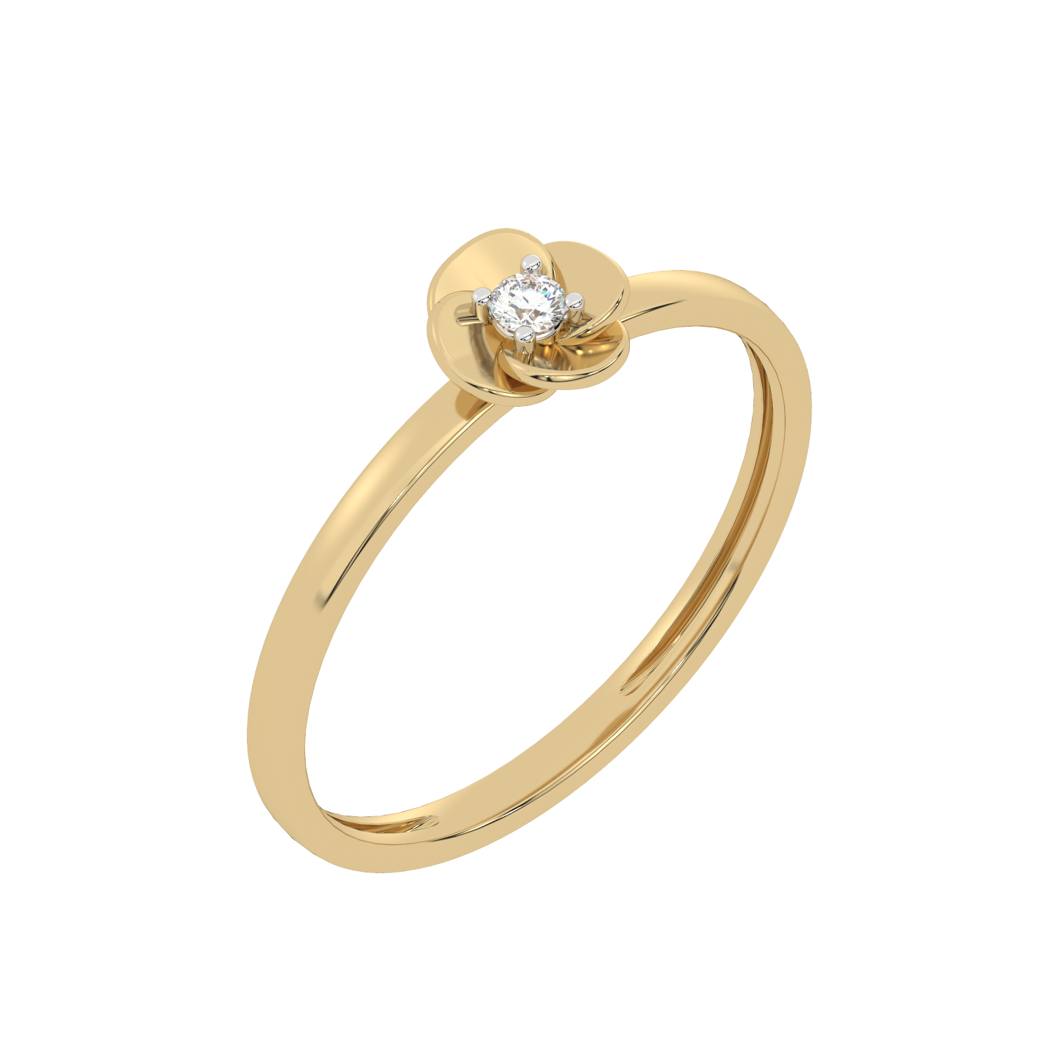 Gold engagement ring with a single diamond