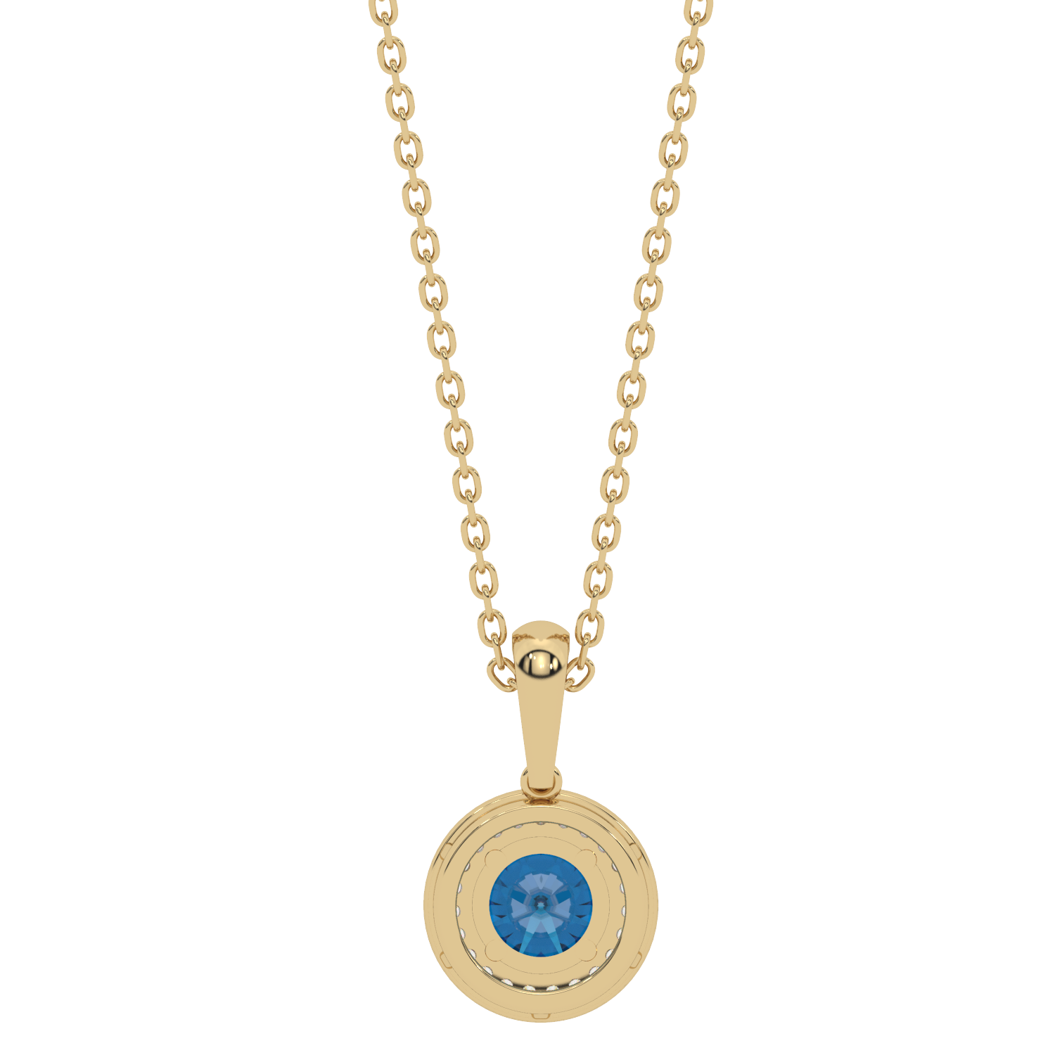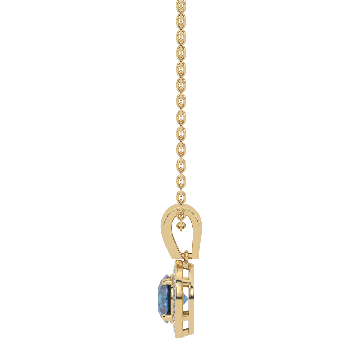 Add a touch of luxury to your jewelry with our elegant gold pendant that combines extraordinary London blue topaz and diamonds. The central, round London blue topaz weighing 1.02 ct captivates with its intense, deep color, which attracts the eye and exudes elegance. Surrounded by 24 single-cut diamonds, this pendant gains additional sparkle, creating a harmonious and dazzling composition.