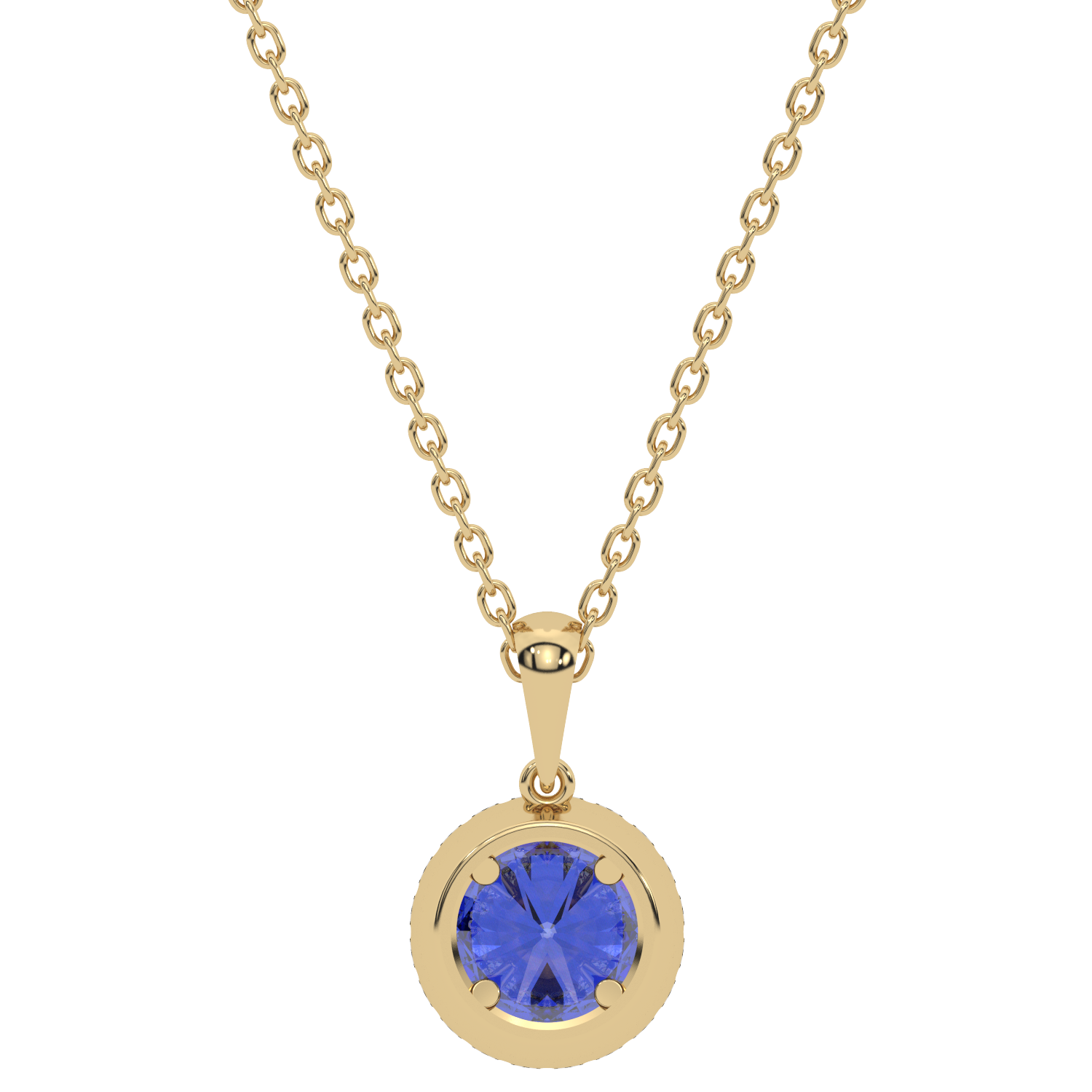 Discover unparalleled elegance and brilliance with our unique gold pendant that combines a stunning tanzanite with diamonds. Featuring a central round-cut tanzanite weighing 1.10 ct, this pendant captivates with its deep, intense shade of blue, which attracts the eye and adds a luxurious touch. Surrounded by 21 single-cut diamonds, the pendant gains additional brilliance and subtle elegance, creating a dazzling accent for any occasion.