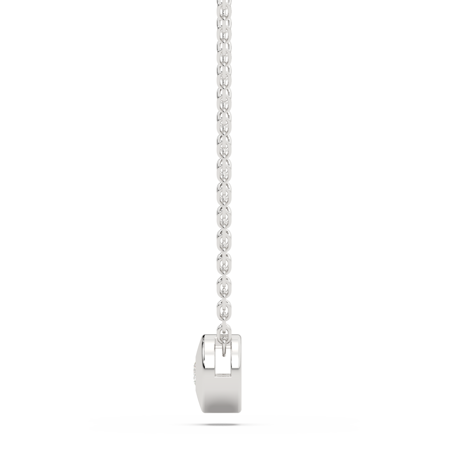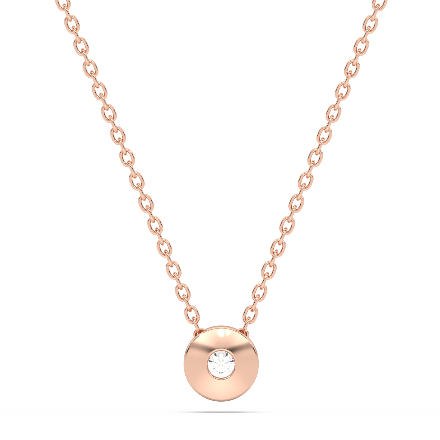 Round pendant with a single diamond in the center. Chains sold separately.