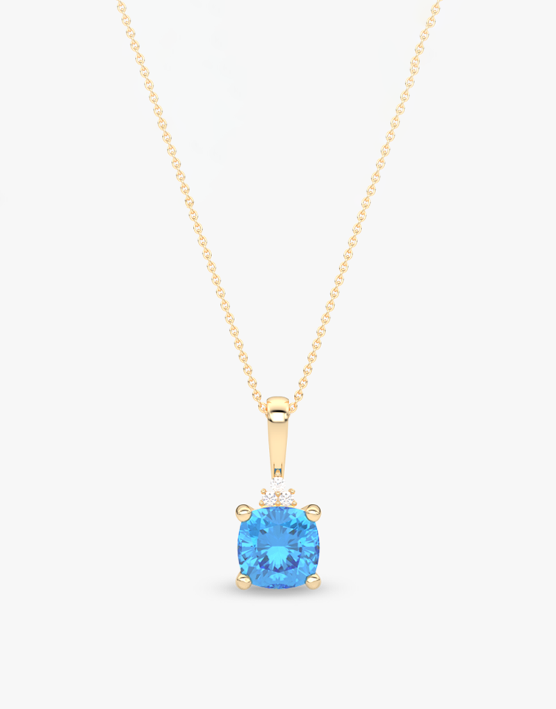 Wisiorek z niebieskim topazem na złotym łańcuszku, idealny na eleganckie okazje