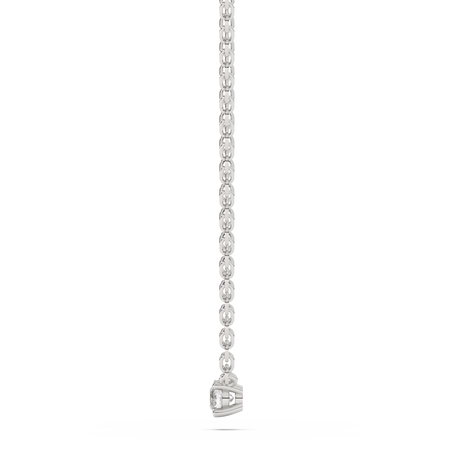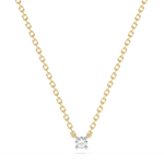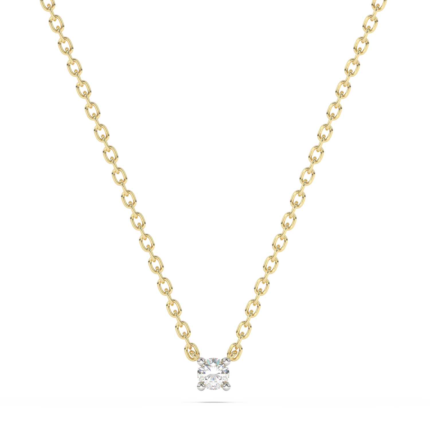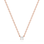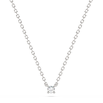 A necklace with a classic pendant in the form of a single diamond in a chaton setting with four prongs.