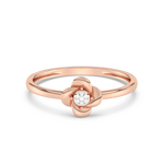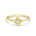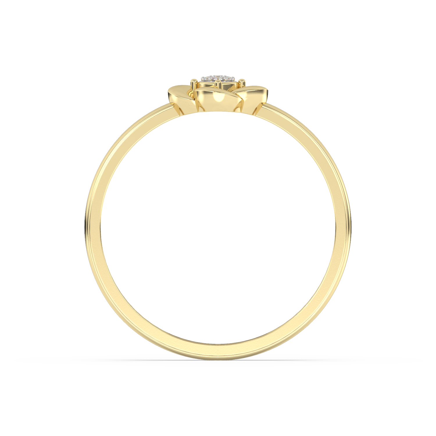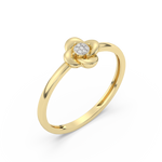 A delicate gold ring in the shape of a rose with four petals and four diamonds in the center. We also offer matching earrings.