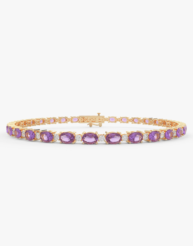 An amethyst bracelet is not only a piece of luxurious jewelry but can also be a "magical" amulet. This gemstone is a symbol of good luck and power. Let our bracelet bring you good luck, even if it's just for the joy of owning it. This gold amethyst bracelet was designed according to the criteria of a tennis bracelet. See its characteristics!