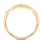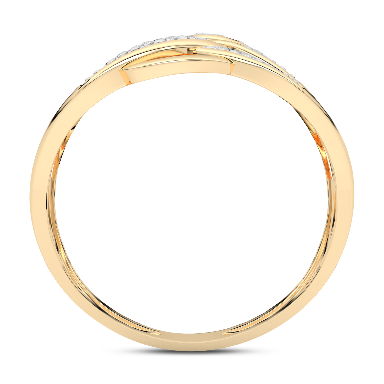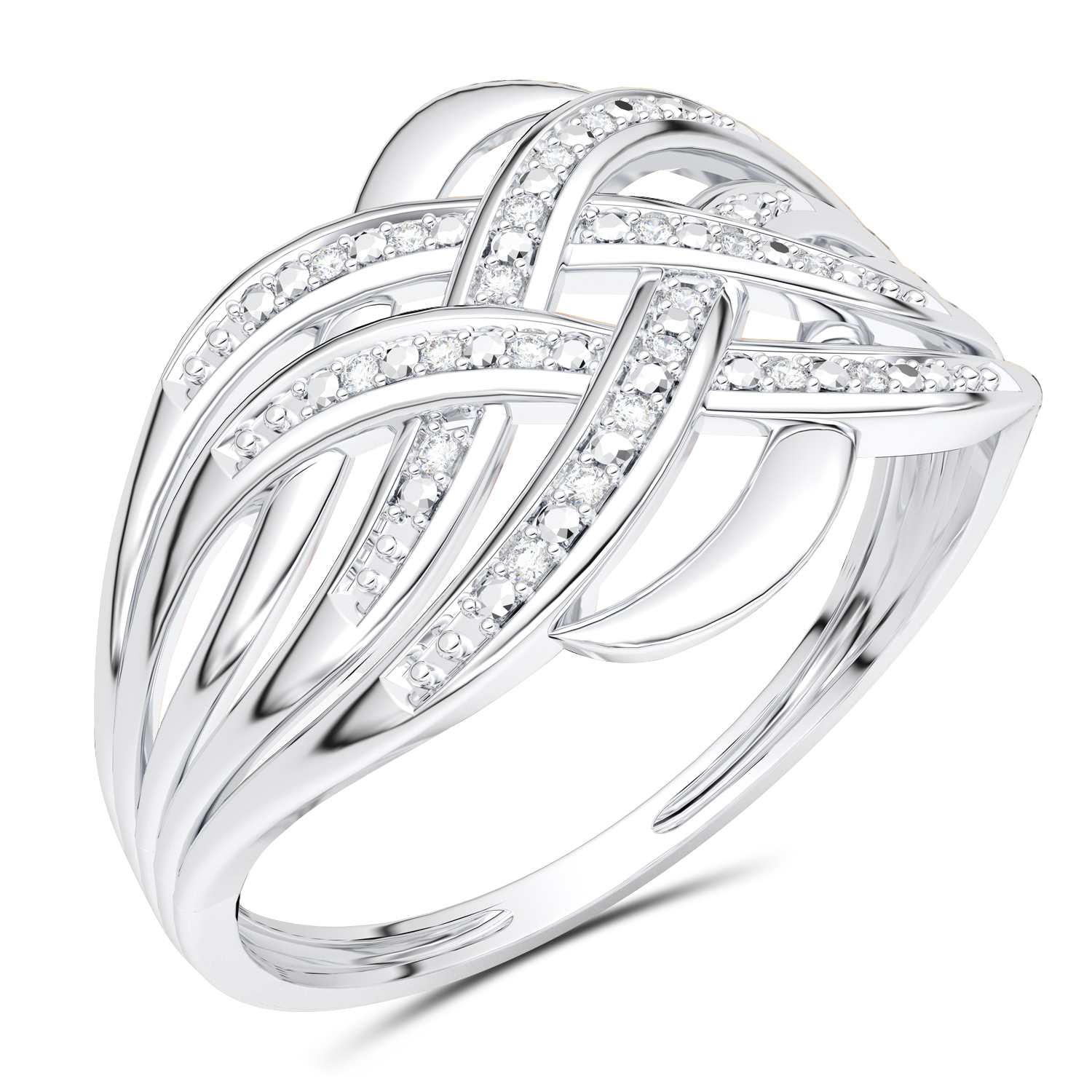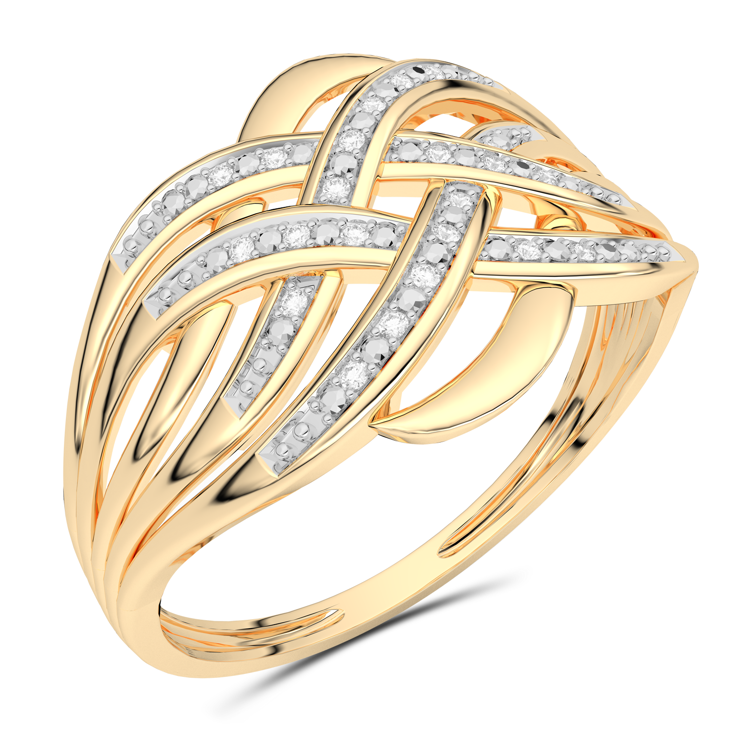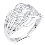 A classic ring with intertwined, wavy stripes set with diamonds.