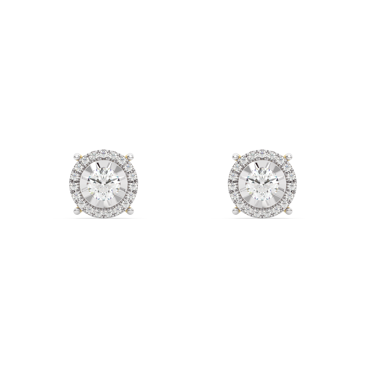 Te złote kolczyki z brylantem mają prostą, ale zachwycają formę. Na złotych sztyftach umieszczono brylant halo, czyli duży kamień o okrągłym szlifie (0,27 ct), otoczony mniejszymi kamieniami, które dodatkowo podkreślają jego blask.