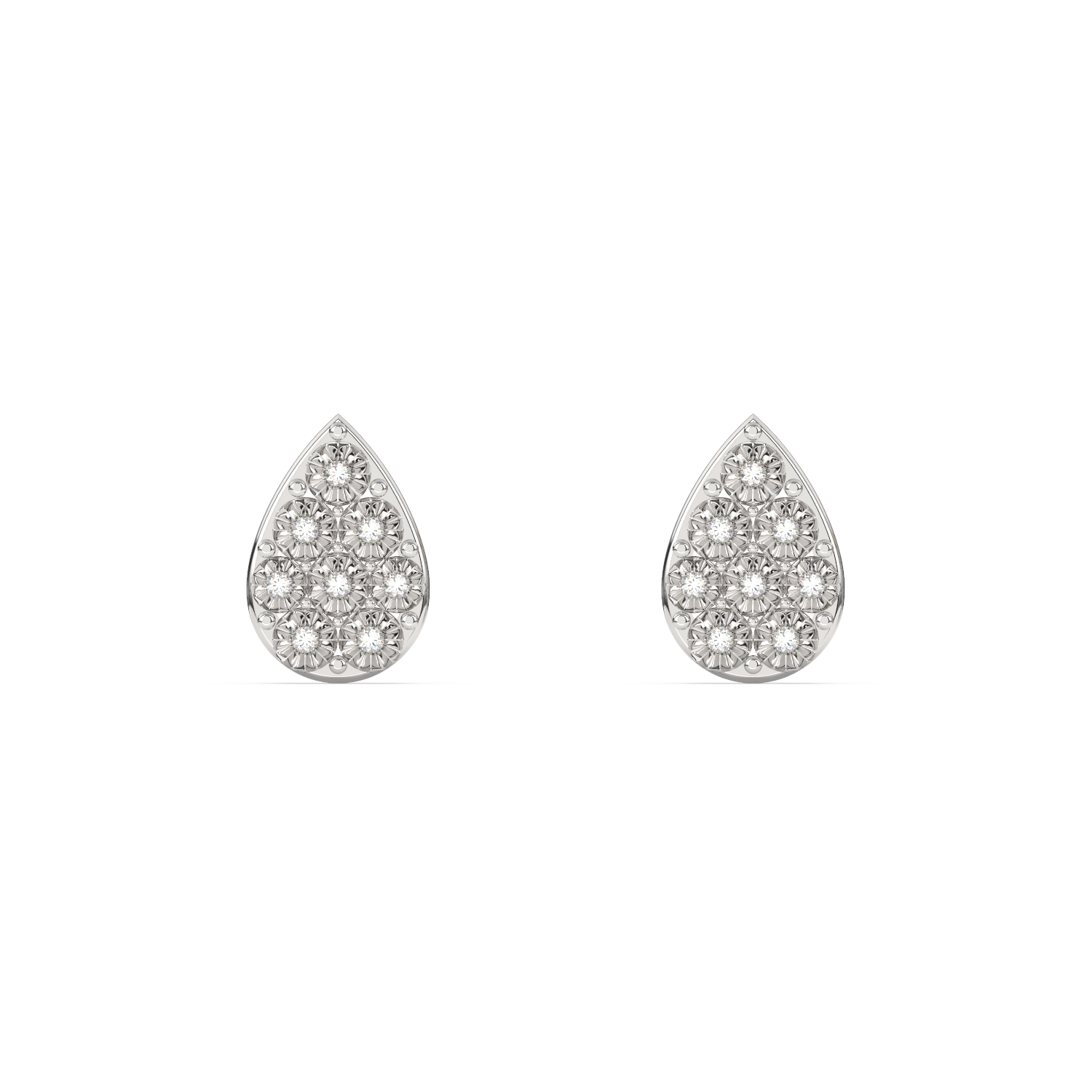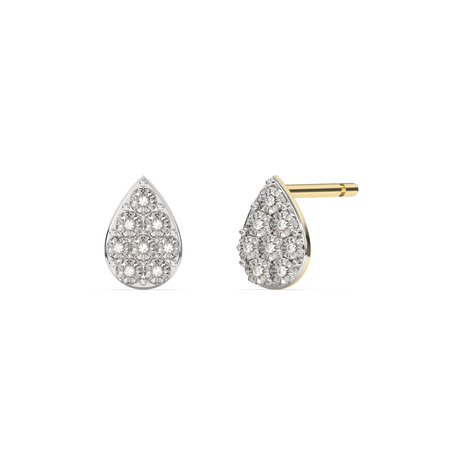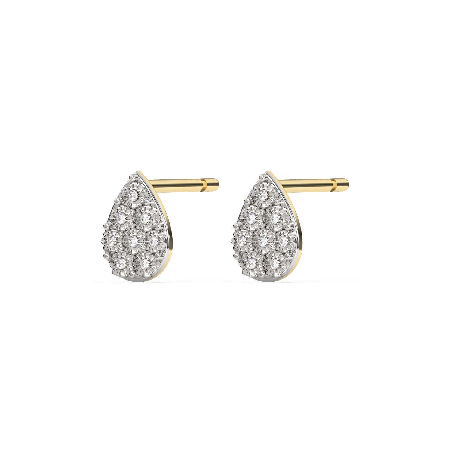 Złoty kolczyki w kształcie łezki, wysadzana ośmioma brylantami tworzącymi geometryczny wzór.