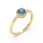 Pierścionek Halo z Niebieskim Topazem - Venetia Jewels - 14K złoto z brylantami