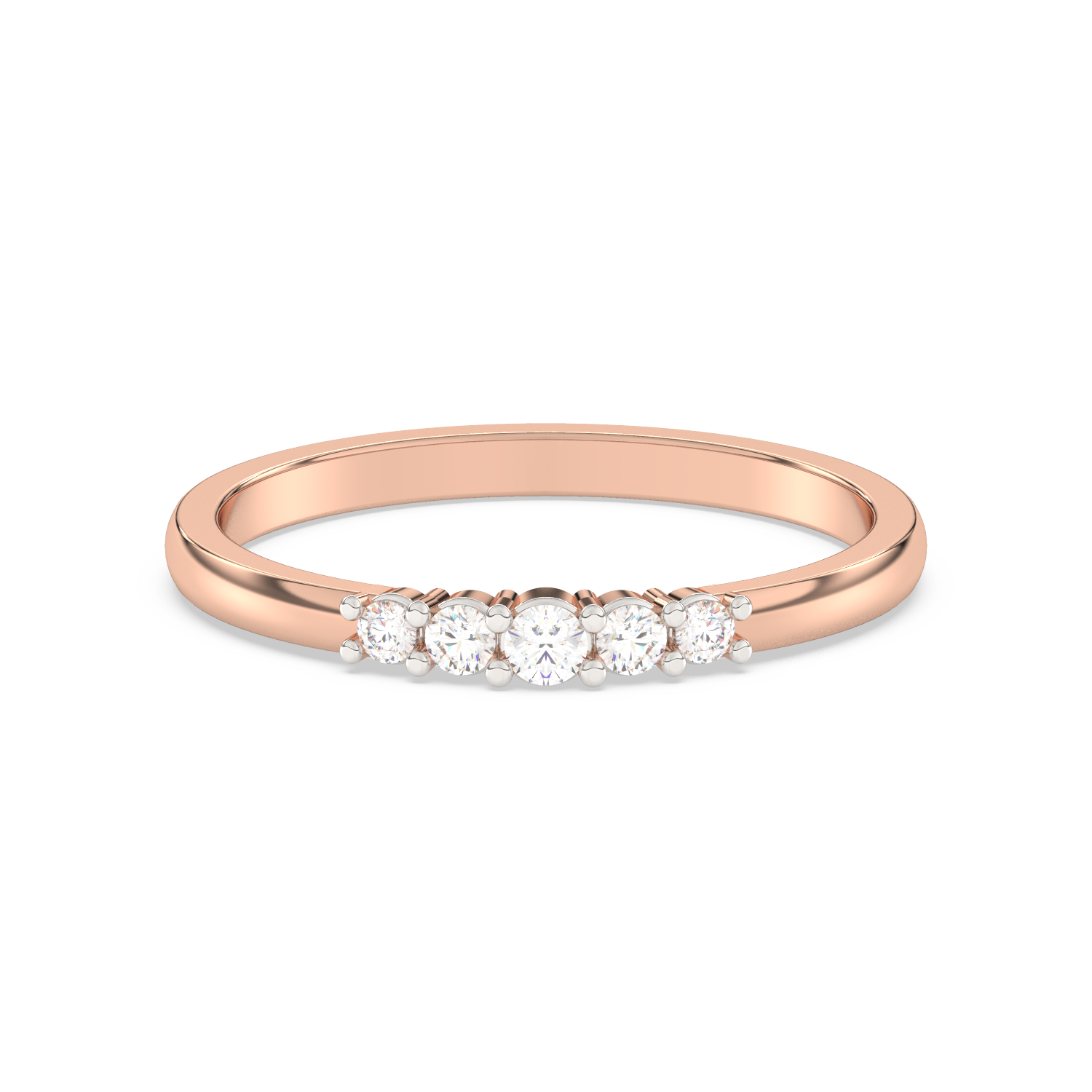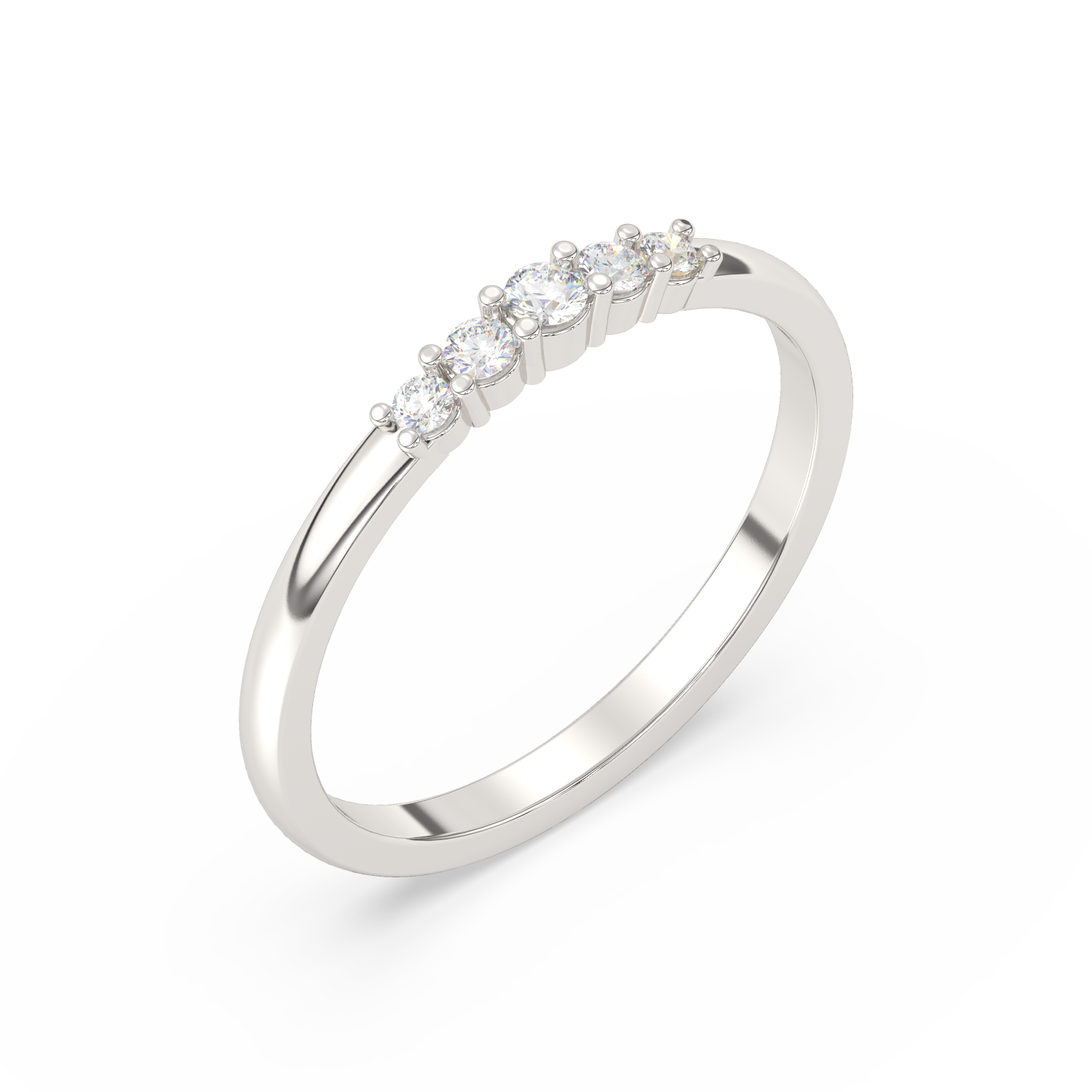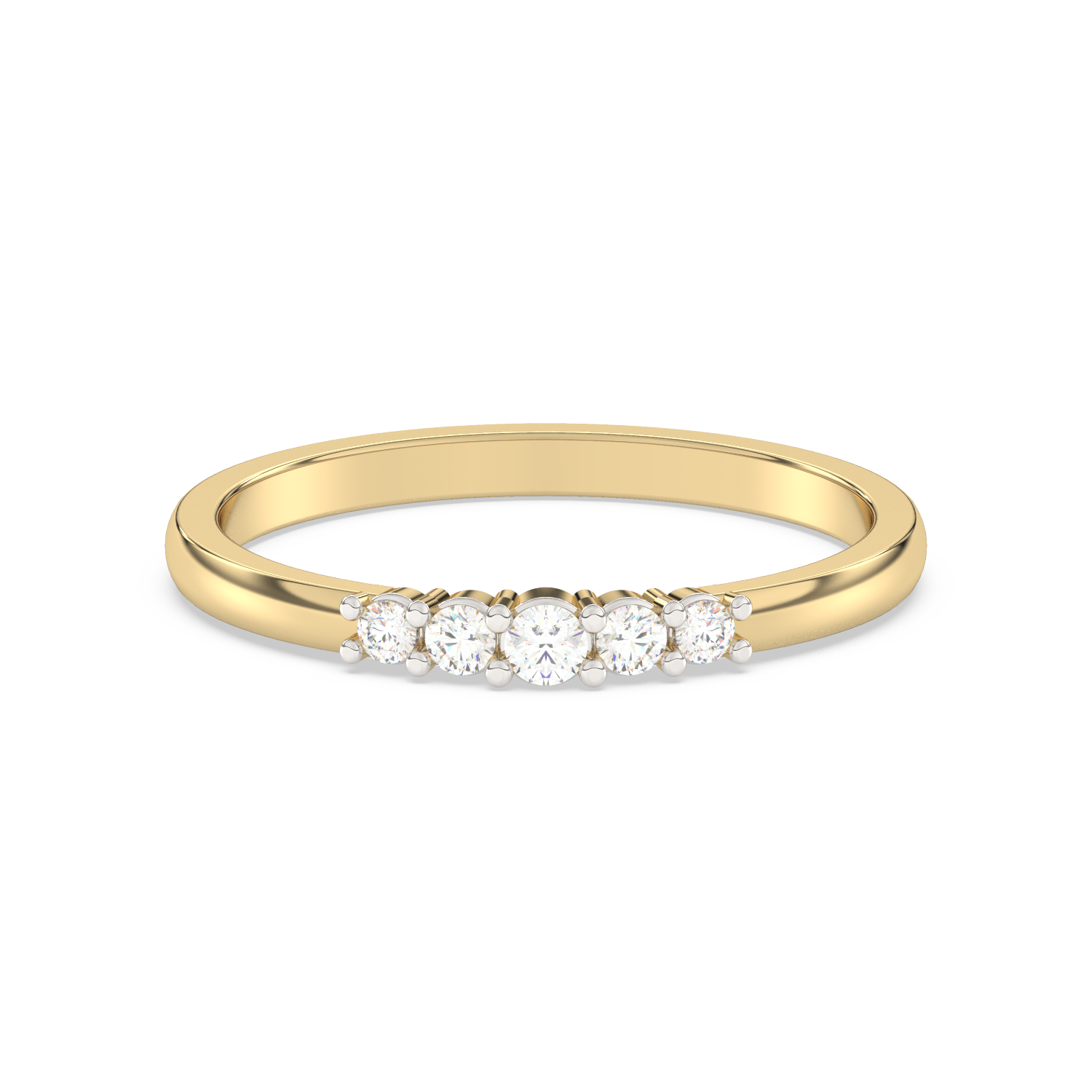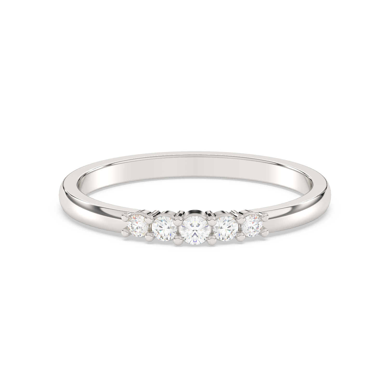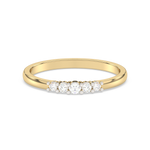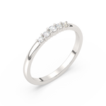 Elegancki pierścionek z pięcioma brylantami umieszczonymi obok siebie na obrączce.