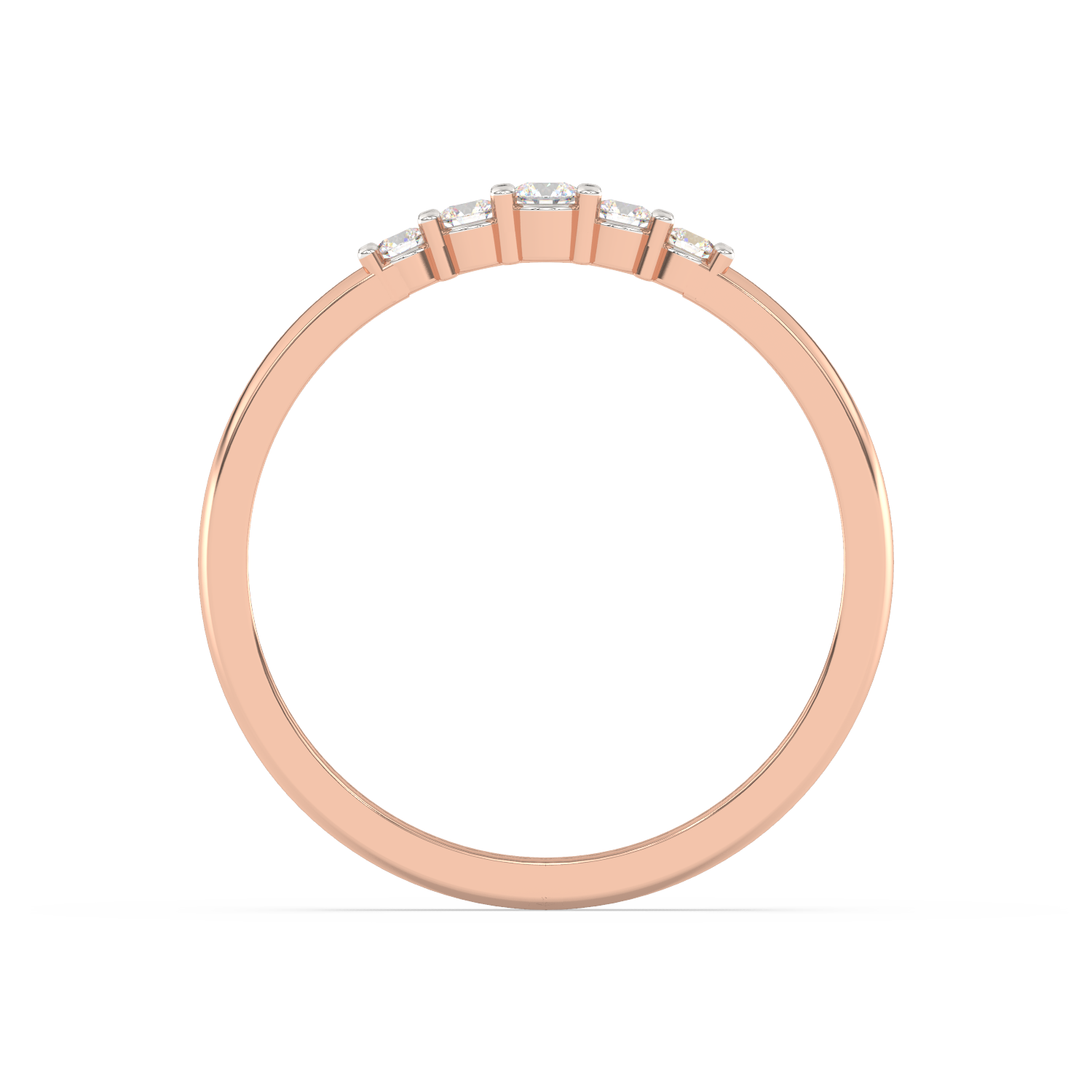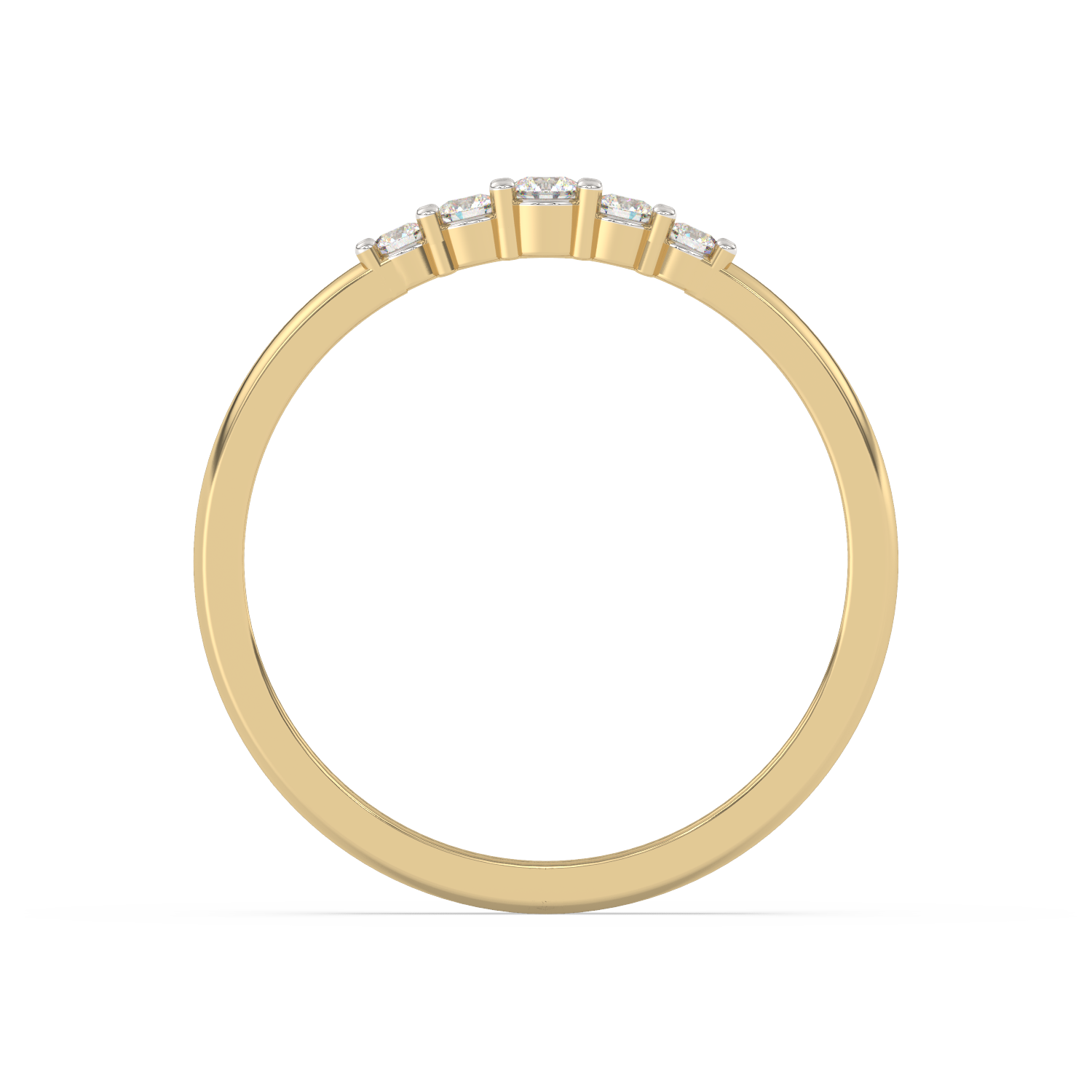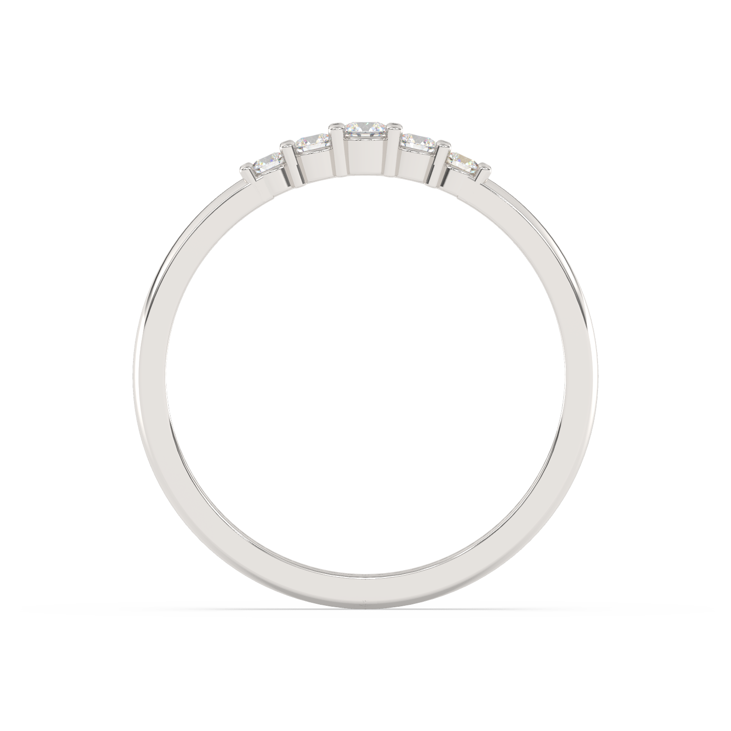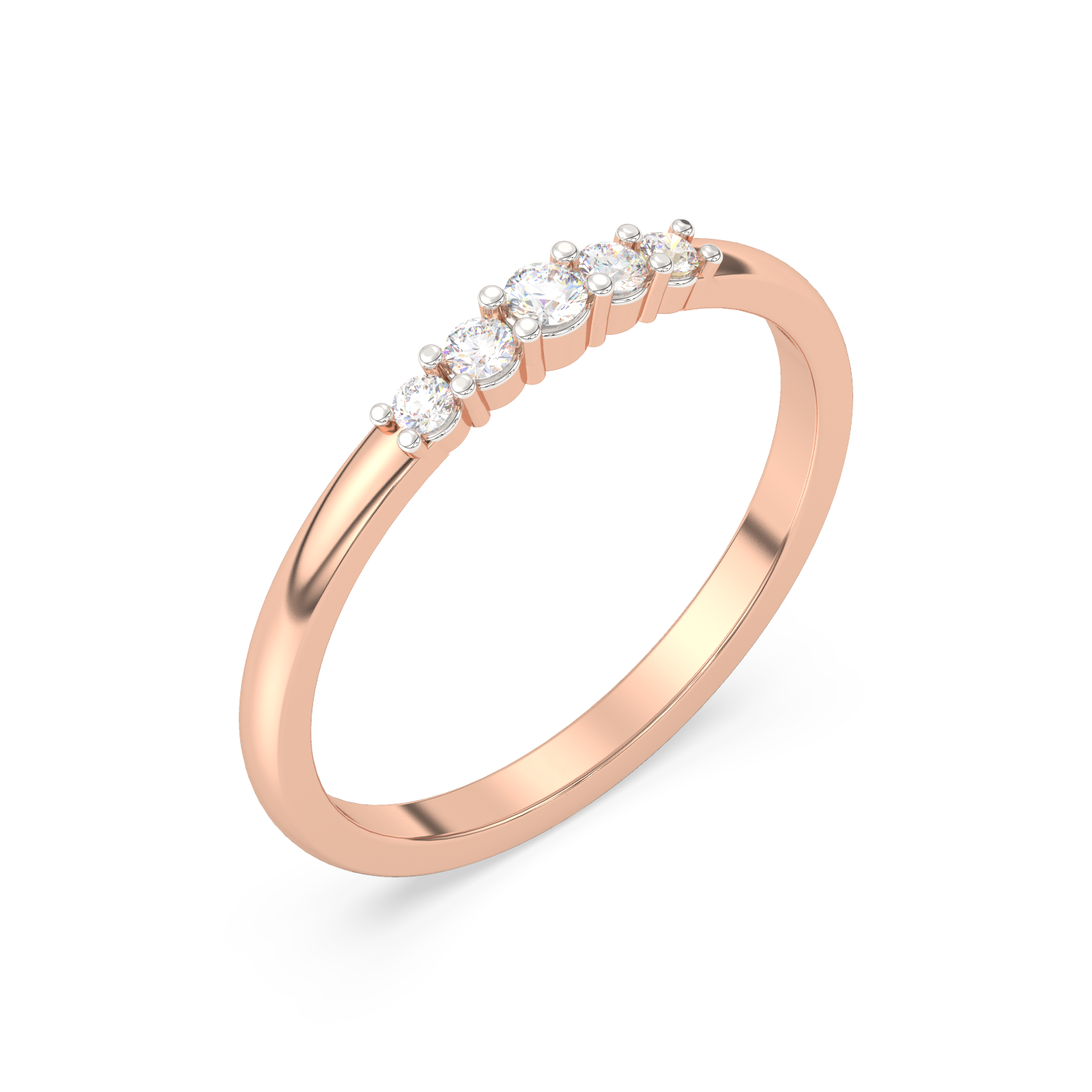 Elegancki pierścionek z pięcioma brylantami umieszczonymi obok siebie na obrączce.