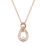 Podwójny wisiorek w kształcie łezki z pojedynczym brylantem w centrum oraz z 14 brylantami w oprawie kanałowej. Łańcuszki sprzedawane oddzielnie.