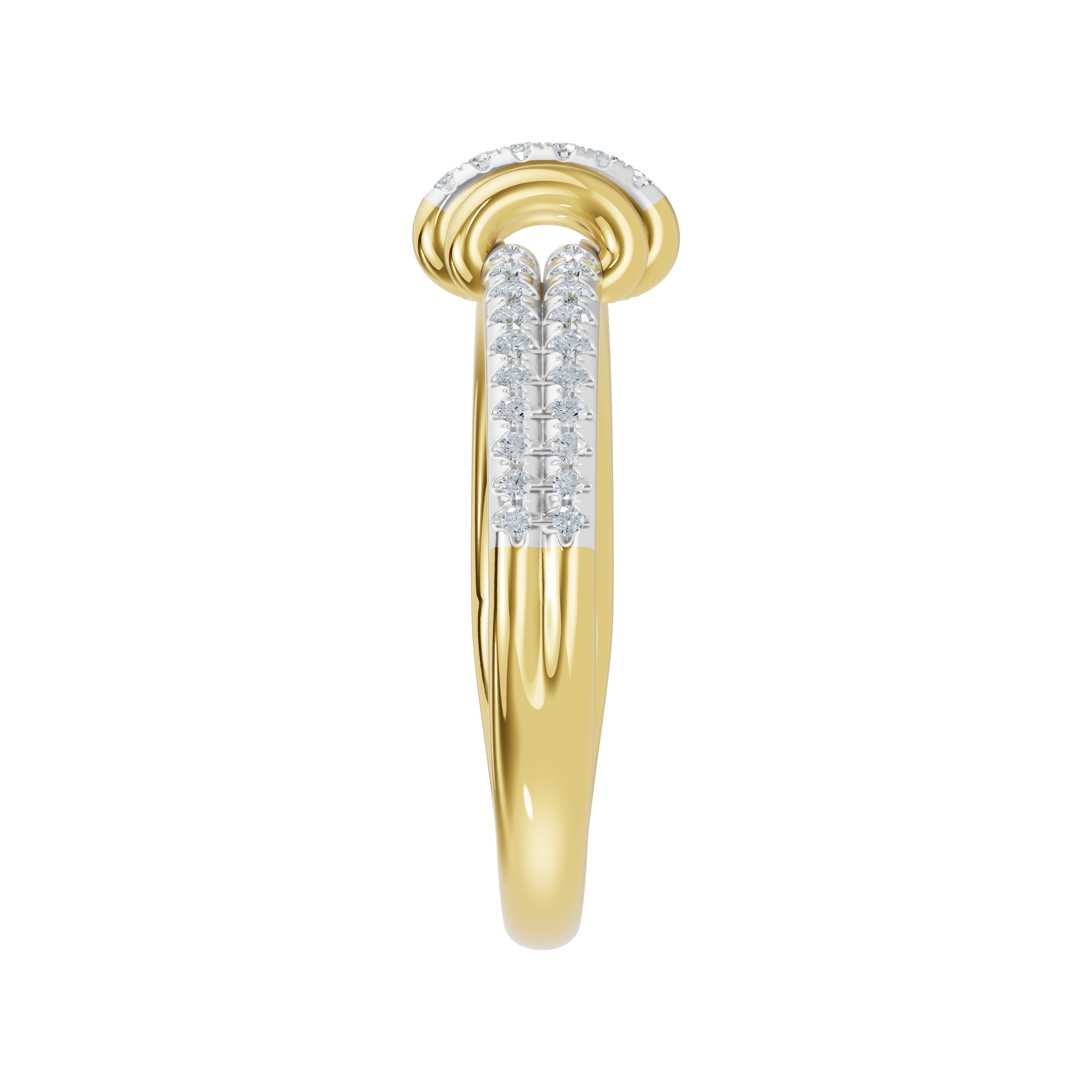 Pierścionek zdobi aż 46 brylantów o łącznej masie 0,18 ct, o szlifie brylantowym, czystości GH-SI2. Starannie oprawione kamienie mienią się przy każdym ruchu, dodając całości luksusowego uroku.